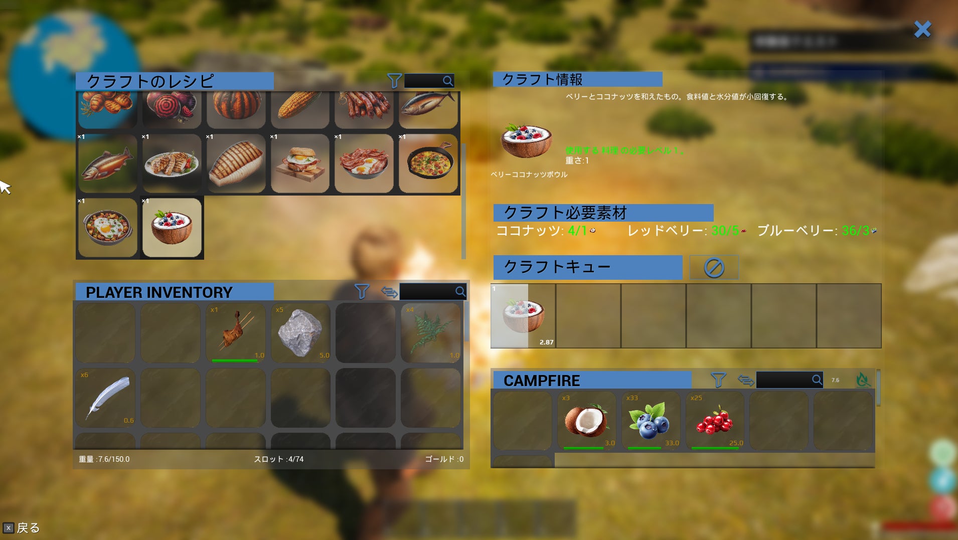 食料は、採集や倒した野生動物のスキニングで入手でき、調理も可能です。ただし、食料には鮮度があり、時間が経つと腐ってしまうため注意が必要です。