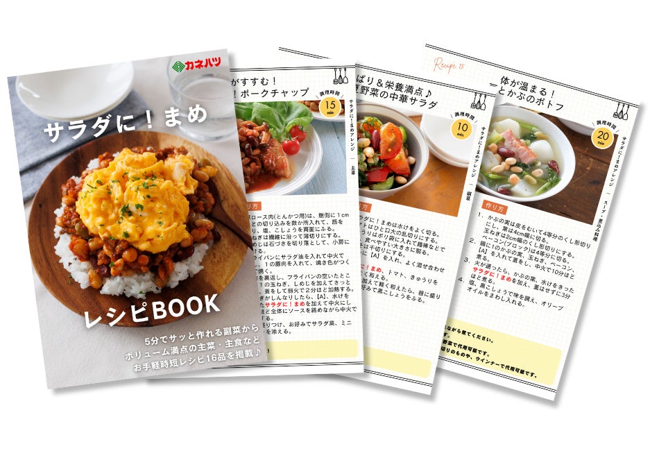 ・外れた方の中からWチャンスとして、抽選で100名様に「サラダに!まめオリジナルレシピ本」をプレゼント。