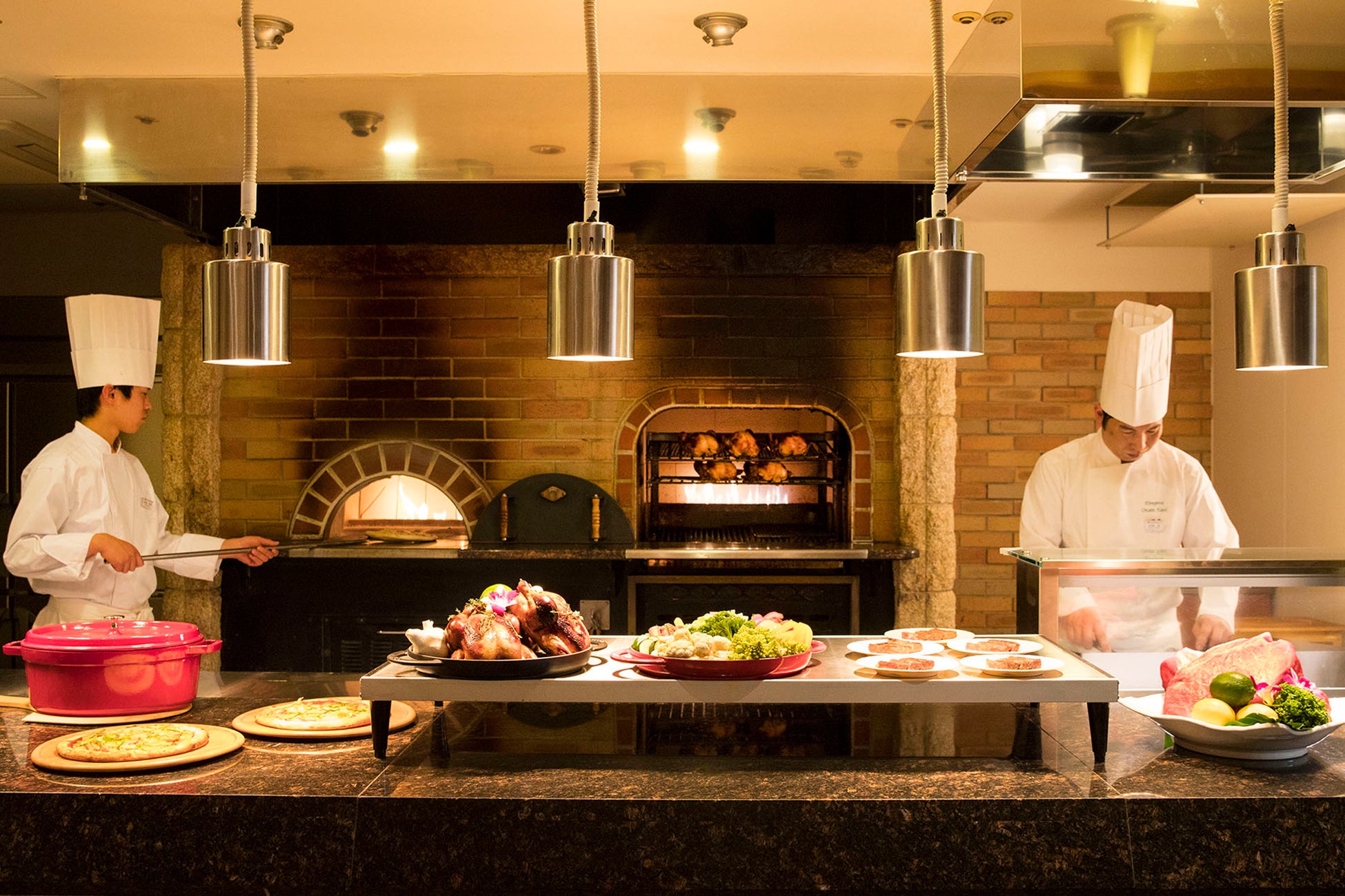 アメリカンな豪快スペアリブのBBQは旨味たっぷり。ジャンバラヤはアメリカ南部を代表する料理、スパイシーな味付けに仕上げました。インドからは香辛料がアクセントのタンドリーチキン、カレーはスパイス香る本格派です。メキシコのタコスは、トルティーヤにお好みの具材とサルサをのせて。イギリスのフィッシュ&チップスには、ピリ辛のソースをたっぷりディップ。ベトナム名物のフォーは夏にぴったりな冷製仕立て、胡麻だれでさっぱりといただけます。中国料理の酸辣湯は酸味と辛みがマッチし、春雨で軽く食せます。ブッフェの看板メニュー、イギリス料理の厚切りローストビーフは低温でじっくりと火を通して柔らかく仕上げました。バターが香る手作りピラフはフライパンであおって炒める本場仕立てです。また姉妹館の鬼怒川金谷ホテルで人気の和風ビーフシチューは、元来のヨーロッパ料理とは異なり、大根や八丁味噌を加えて和風仕立てに。石窯で焼き立てを楽しめるナポリのミニピッツァはオーダー制で承ります。
