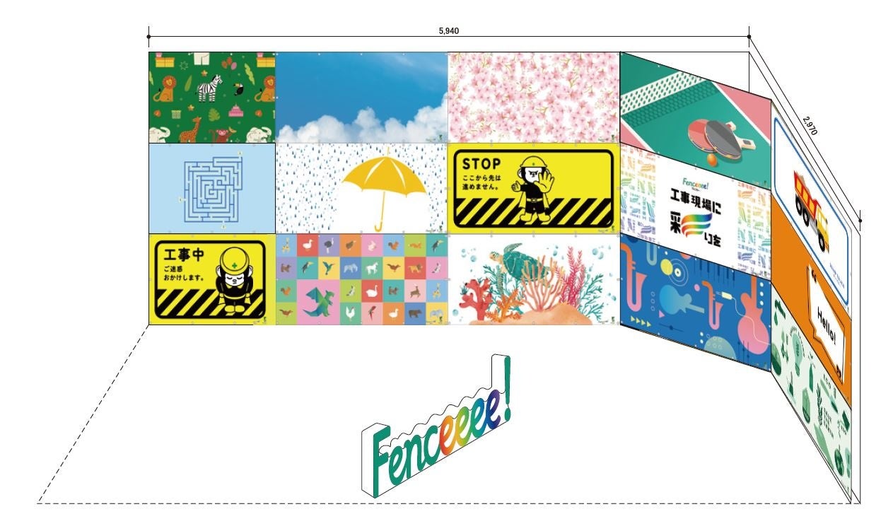 「Fenceeee!」はその常識を変えます。華やかにデザインされたデザインフェンスシートによって、ワクワクとする工事現場に、人々をキラキラとした笑顔に変えていきます。