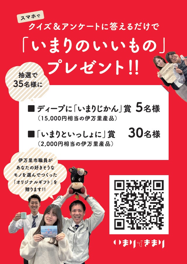 会場には、伊万里旅に行きたくなる情報と、さまざまなプレゼントがもらえるPRブースが設置されています。伊万里市公式Instagram(@imari_ouen)をフォローして会場内で簡単なアンケートに回答すると、抽選で35人に「いまりのいいもの」がプレゼントされます!