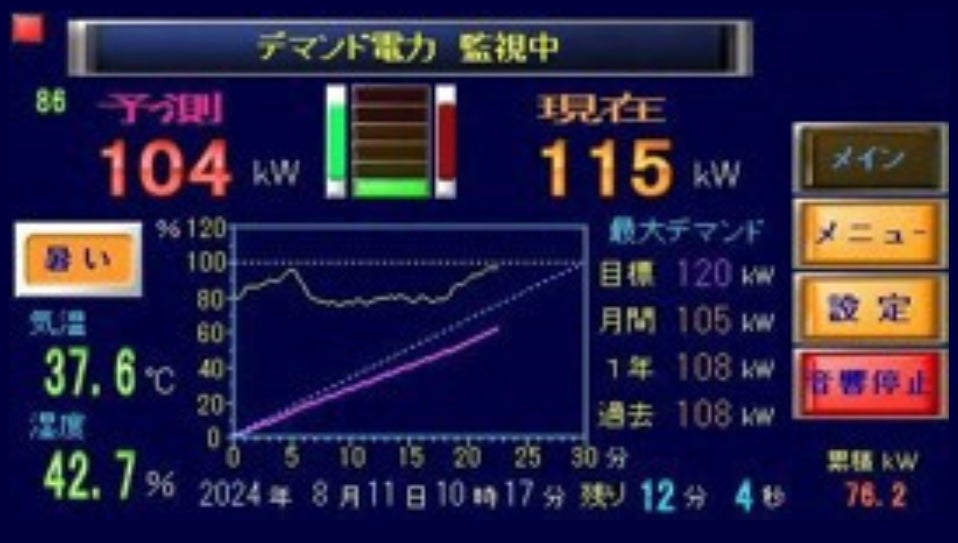 デマンドコントロールシステム「VLA」は、3分単位でエアコン1台をきめ細かくコントロール*¹するため、従来デマンドコントロールシステム(通常30分単位での制御)と比較して、最も条件の悪い部屋に合わせてデマンド目標値を設定する必要がなく、使用電力量を大幅に削減します。また、室外環境だけでなく室内環境も監視しているため、気候に合わせた節電量の自動調整や湿度に合わせた不快指数対応節電コントロール*²で室内の快適さを保ち、不快感を与えることなく大幅な節電が実現可能です。