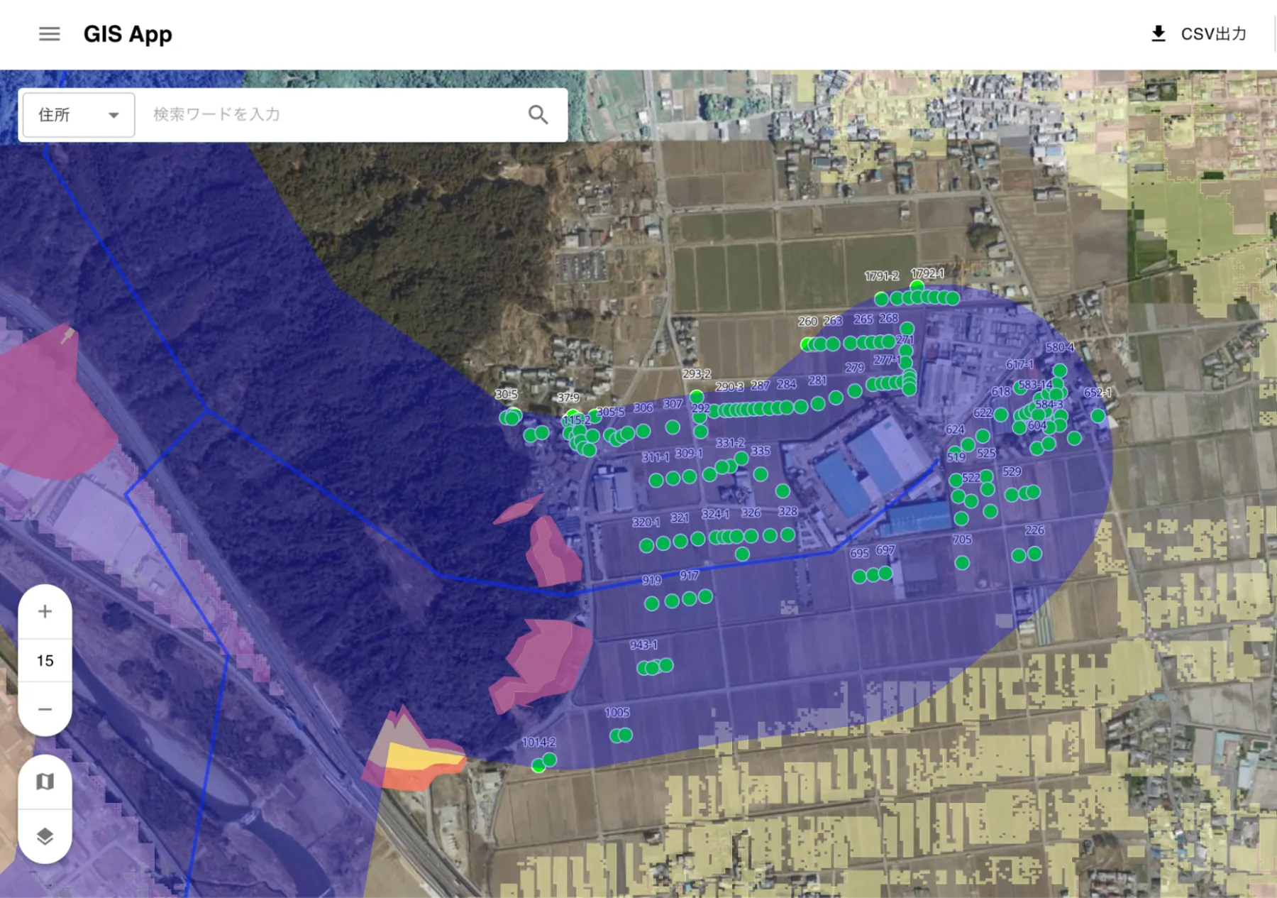 候補地リストエクスポート機能:適地候補の一覧を農地の基本情報とともにCSVファイルで出力