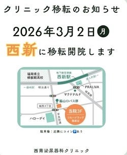 西南泌尿器科クリニック、2026年3月2日より福岡市早良区西新へ移転