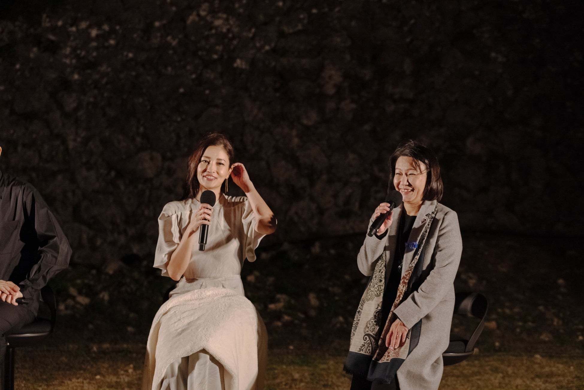 トークセッションでは、藤原さんが演出で苦労した点を問われ、「音と映像のコラボは繊細なので、1年間かけて完成しました。日中の中城城跡とは異なる表情を表現できたと思います」と振り返りました。