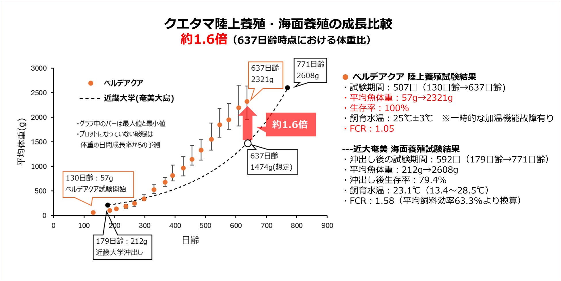 ベルデアクア、クエタマの陸上養殖試験で「おいしく、早く」育つ成果