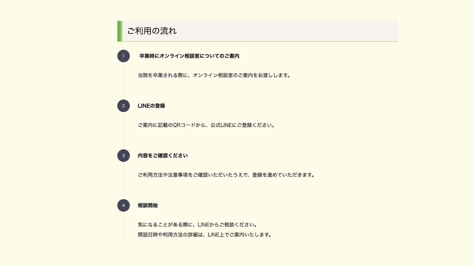当院を卒業される際に、オンライン相談室のご案内をお渡しします