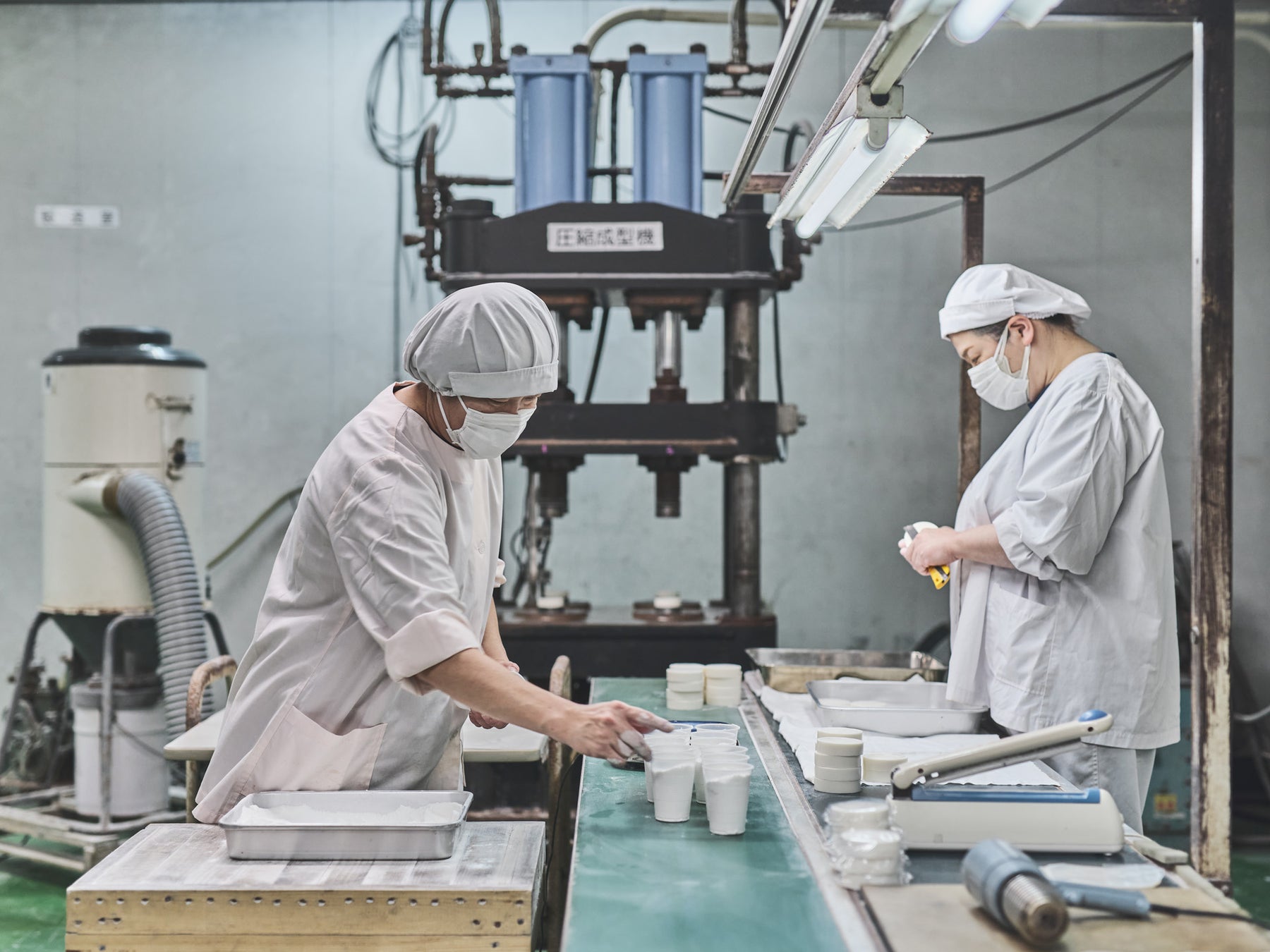 塩石鹸専門の化粧品製造会社です。自社開発の「真空加圧製法」によって生み出される
