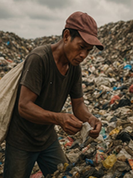 そこに住む人たちは、換金できるゴミを拾って、生計を立てています。雨の日も風の日も家族のために休むことなく働き続けています。