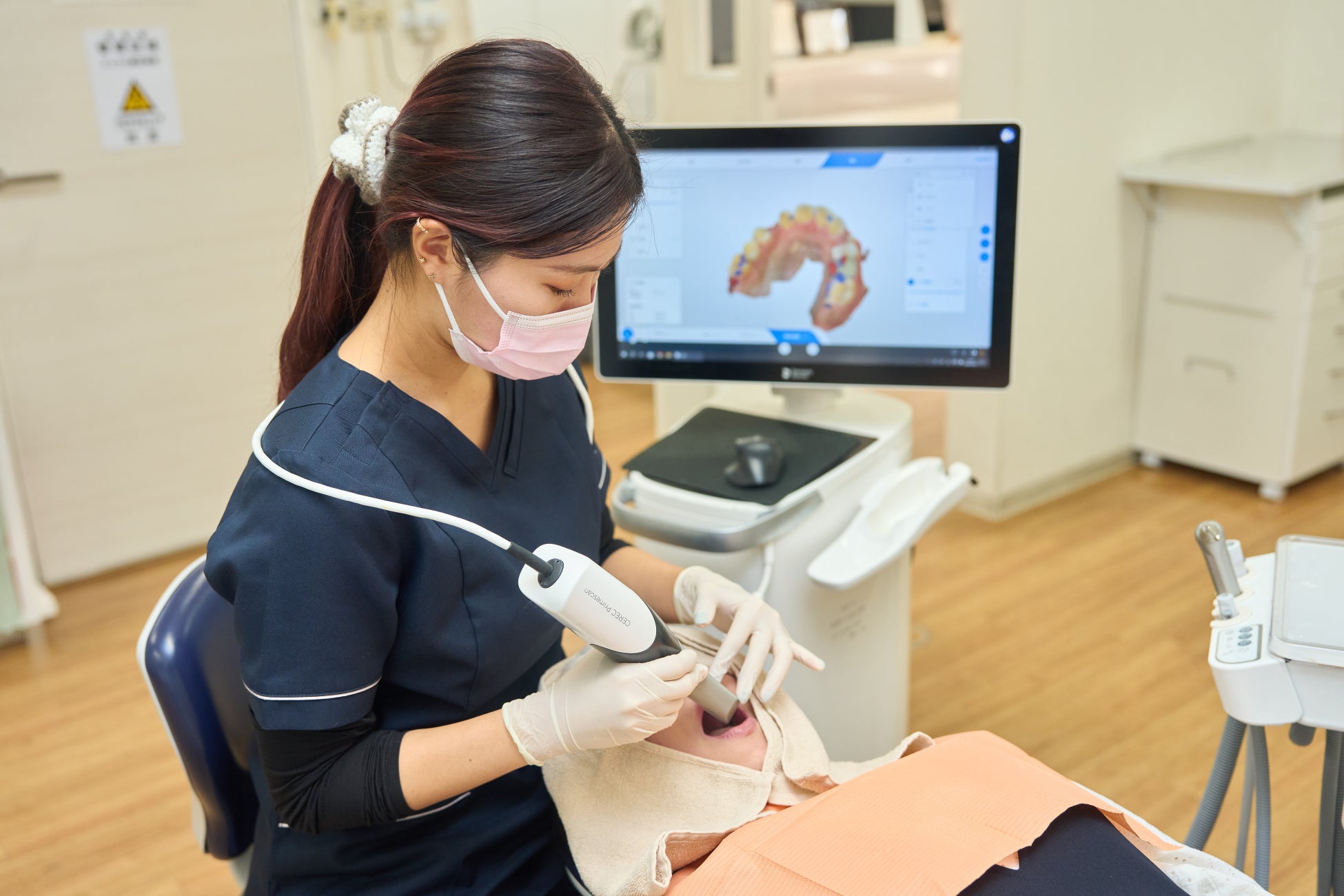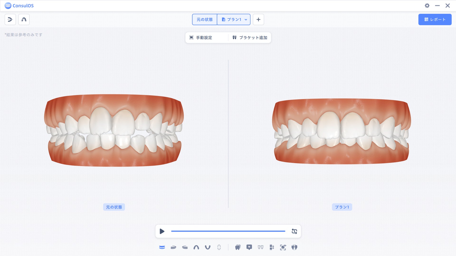 口腔内のスキャンを行い、現在の歯並びと、矯正後の歯並びを実際に見比べることができます。