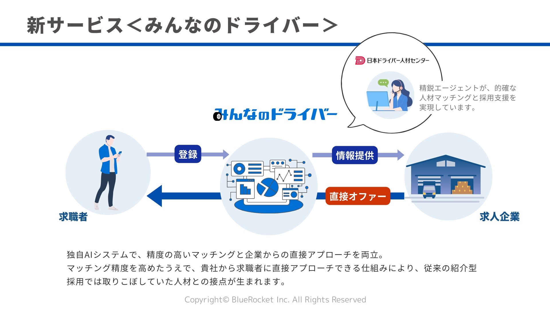 【ドライバー人材採用の新たなソリューション】 株式会社BlueRocket、AI活用によるドライバー特化型ダイレクトリクルーティングサービス「みんなのドライバー」を提供開始