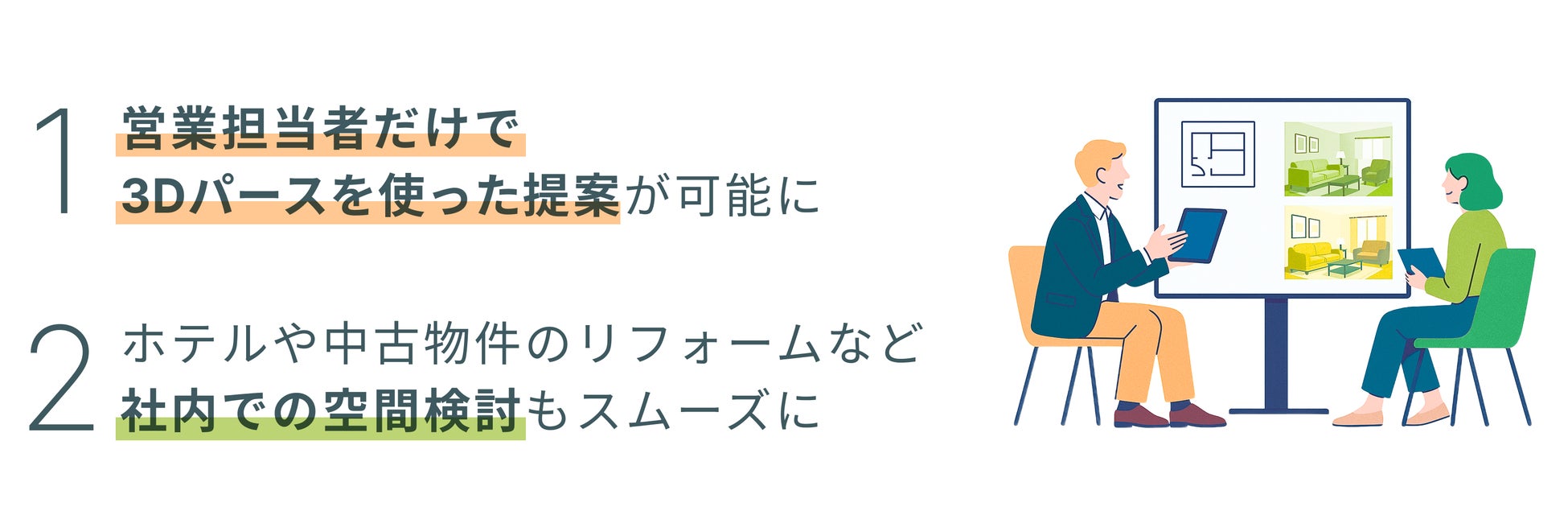 1. 営業担当者だけで3Dパースを使った提案が可能に