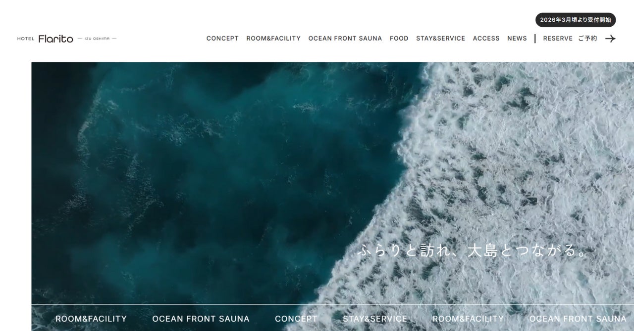 この度、伊豆大島に開業する【HOTEL Flarito 伊豆大島(ホテル フラリト 伊豆大島)】(株式会社アートファイブ(東京都豊島区池袋2丁目41−5 アーバン154 6階:代表取締役 小島弘嗣)は、2025年11月27日(木)に公式ウェブサイトをオープンいたしました。