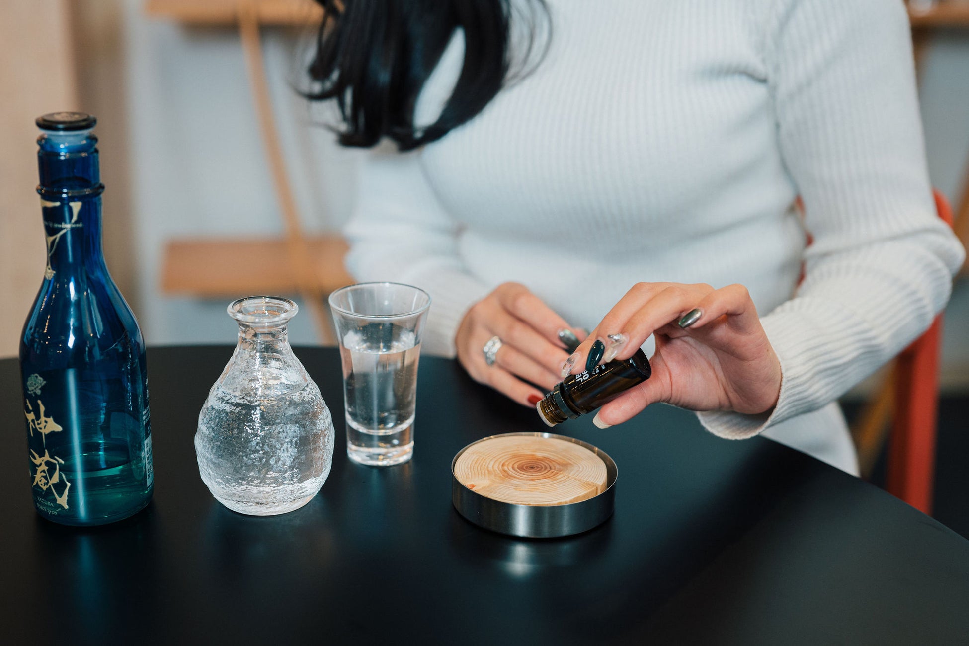 KANSEI京都八条ではお酒と香りのペアリングをラウンジで楽しむことができます。京都の地ビールや日本酒を取り揃え、手に取りやすい価格でご堪能いただけます。お酒の種類ごとに合わせたアロマのセットもご用意しており、香りとお酒のペアリング を楽しみながらリラックスできる空間を提供しています。