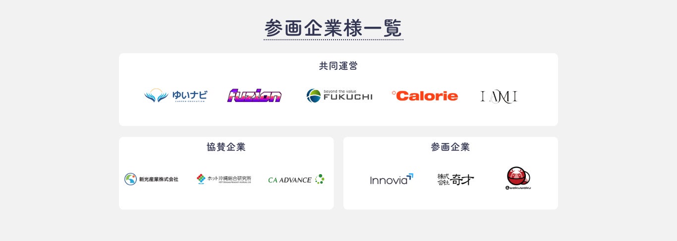 共同運営:ゆいナビ、Fuzion、(株)福地組、(株)カロリー、I AM I(株)