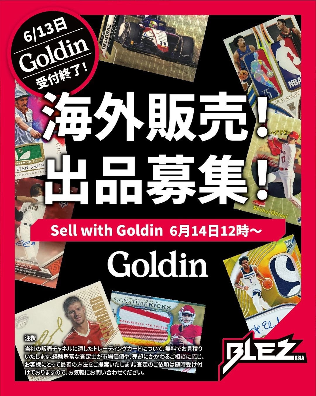 BLEZASIA(ブレッズアジア)は、2025年6月14日(土)、世界最大級のオークション「Goldin」とのコラボイベント「Goldin x BLEZASIA in Tokyo」を、池袋のBLEZASIA店舗にて開催いたします。