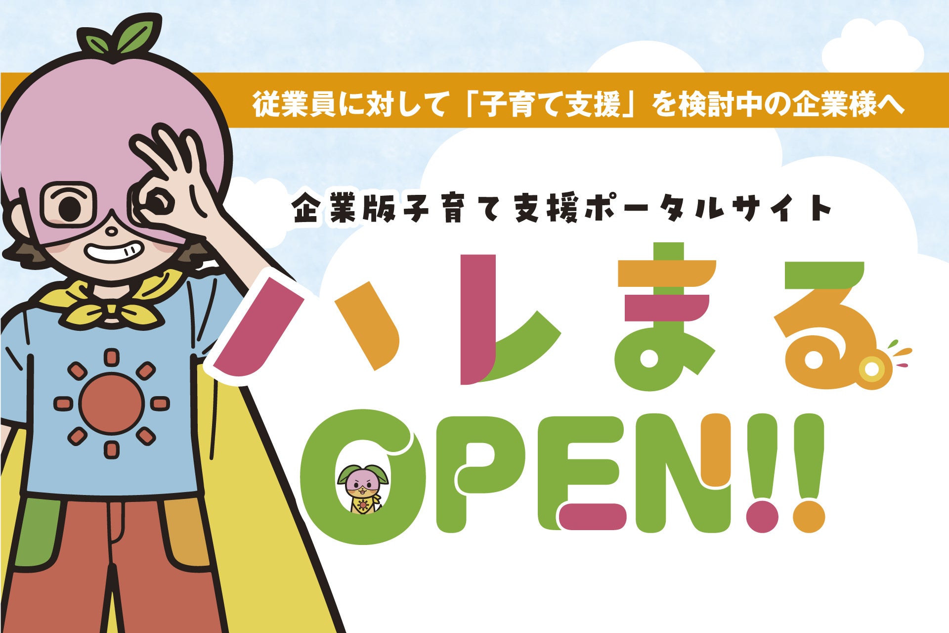 【岡山県】子育て支援に関する企業の取組事例や、県などが実施するセミナー、国や市町村を含めた補助金等の情報を幅広く紹介する、企業版子育て支援ポータルサイト「ハレまる。」を公開。