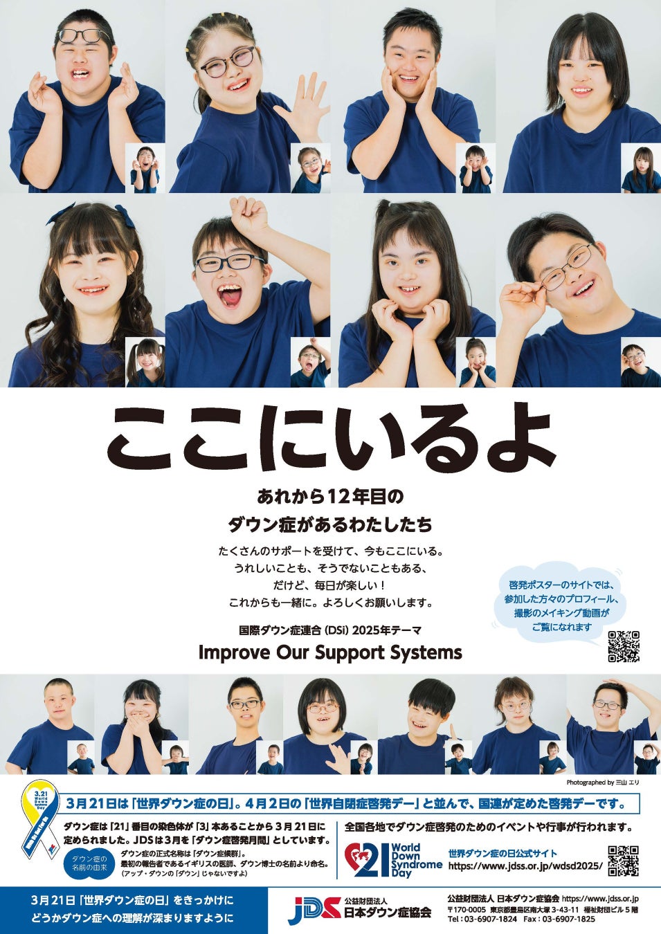 3月21日は国連が制定した「世界ダウン症の日」、2025年のテーマは「ここにいるよ」 ダウン症のある若者たちの11年の成長物語が見える啓発ポスターを発信中