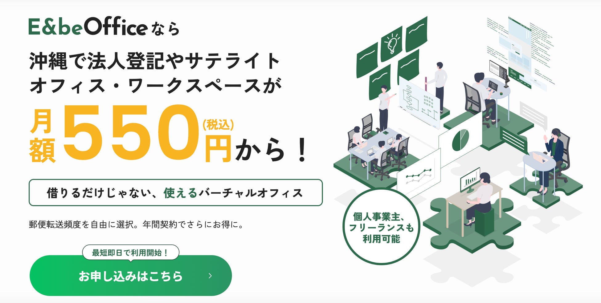 沖縄のバーチャルオフィス「E&beOffice」を提供開始。法人登記・サテライト拠点が月額550円(税込)から