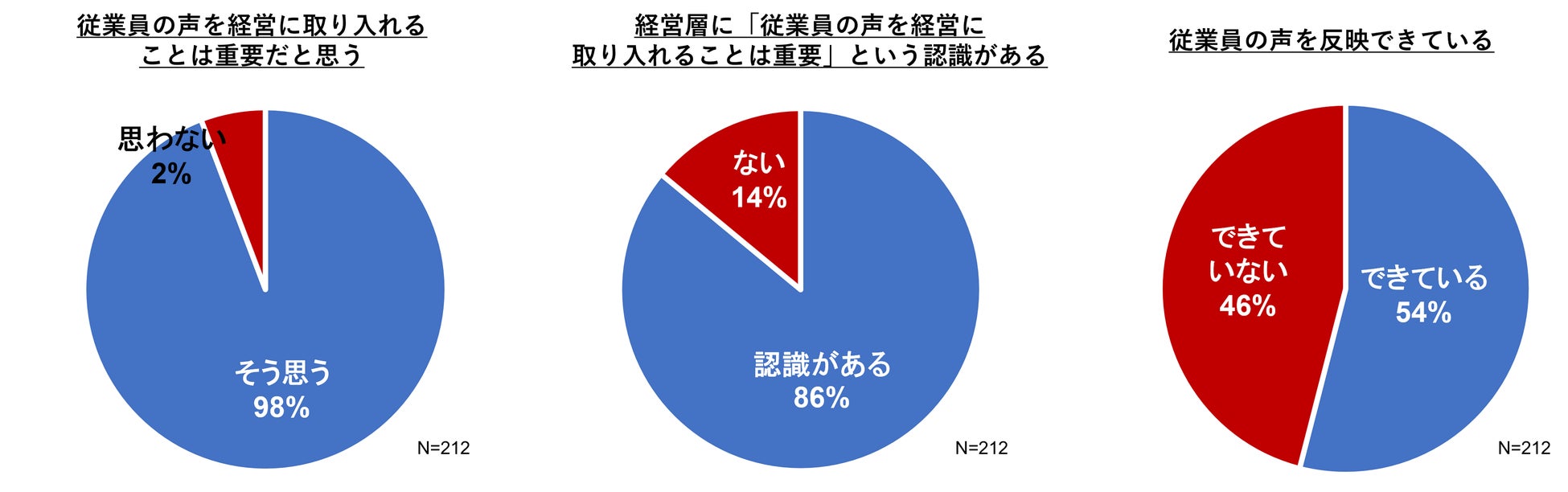 従業員の声を経営に取り入れる重要性は認識されているものの、実際の反映には課題が残る