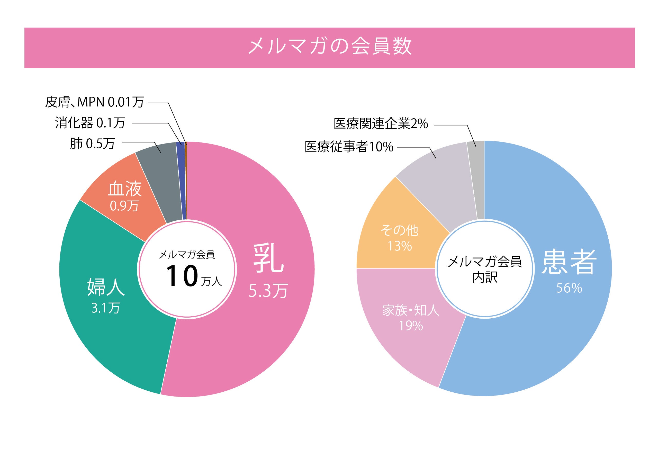会員向けに月1回発行しているメールマガジンでは、がん関連の最新の研究結果や学会での話題などを、患者さんやそのご家族に”わかる”言葉で伝えることを心掛けた、信頼性の高い情報発信を行っています。2013年の発刊以来、患者さんのみならず、ご家族や医療従事者からも厚い支持を得ており、この度、本メールマガジンの登録者が10万人を迎えるに至りました。