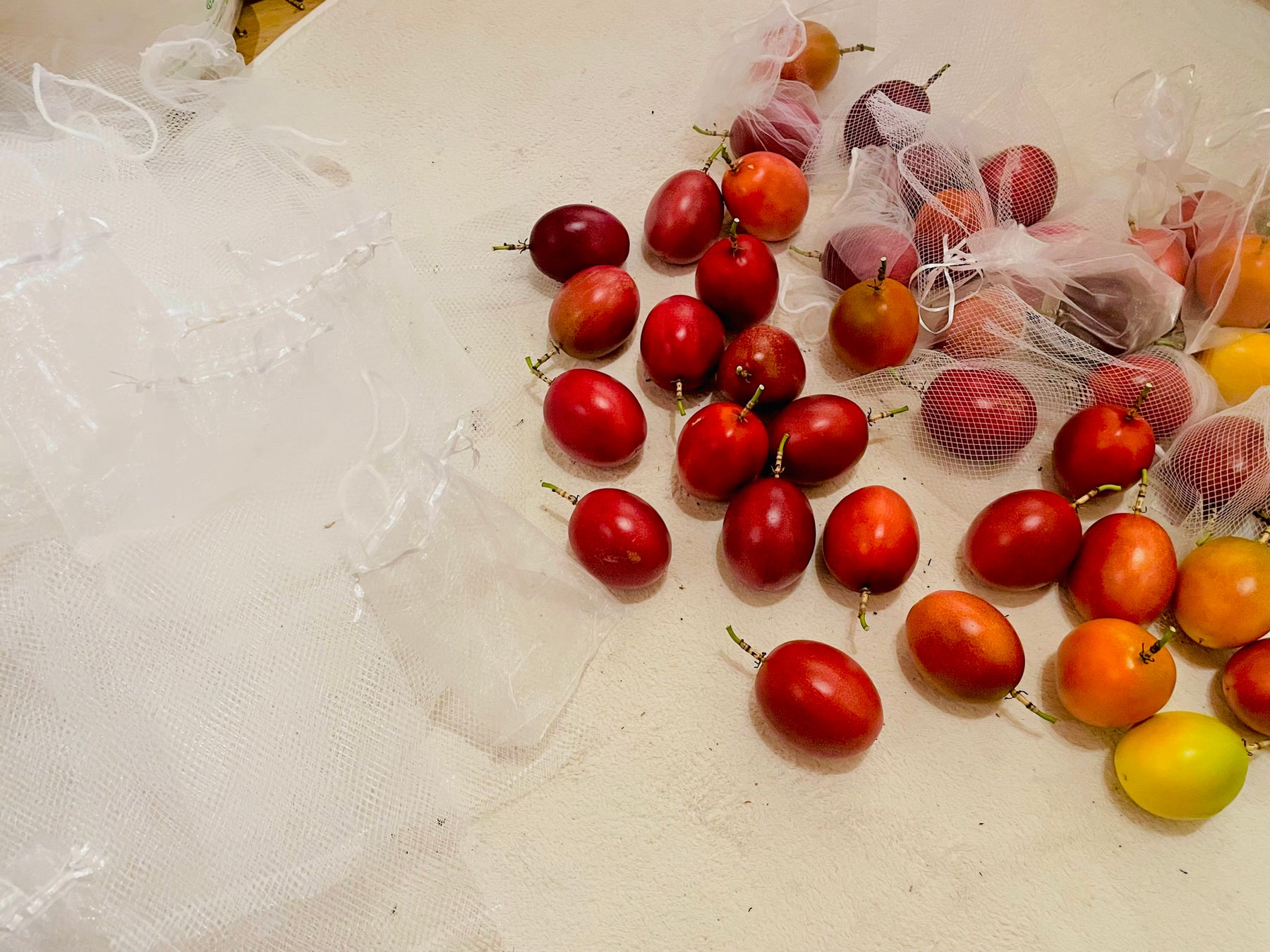 果実の袋がけ、収穫、測量、ヘタ切り、拭き上げに至るまで、すべての工程を手作業で行います。
