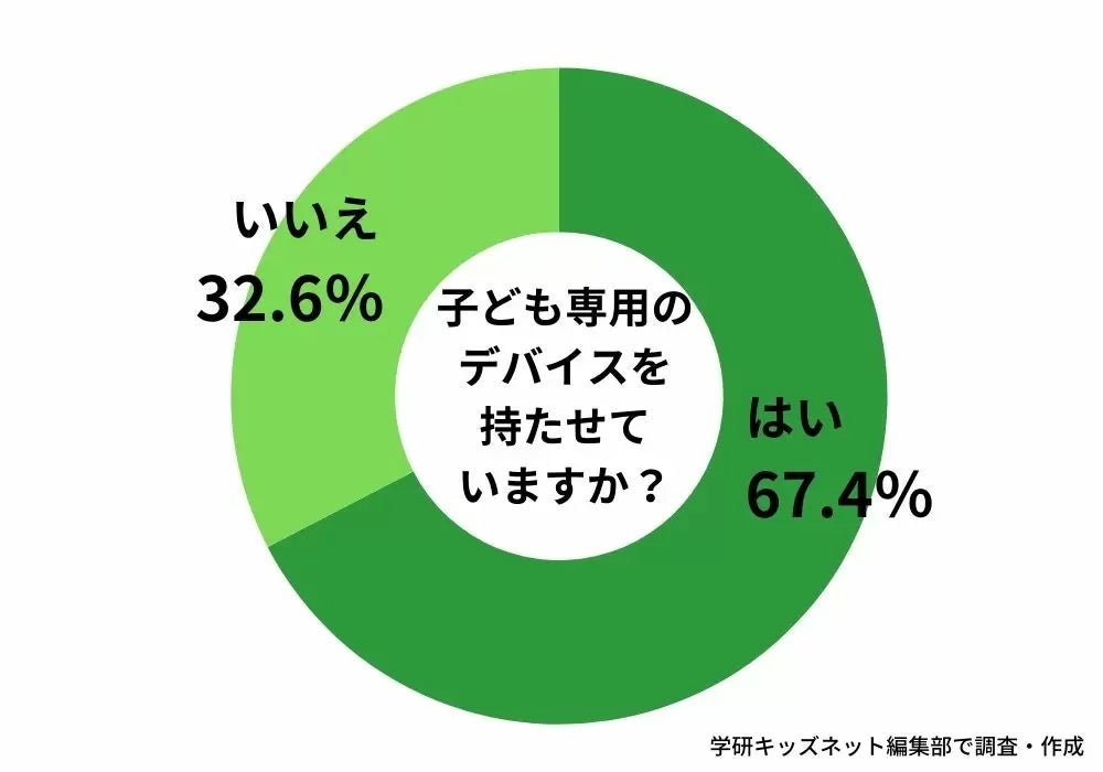 学研キッズネットの調査結果によると、小中学生の子どもが居る保護者に向けたアンケートでは、小中学生の約7割の家庭が「自分専用のデバイス」を持たせているという結果が出ています。