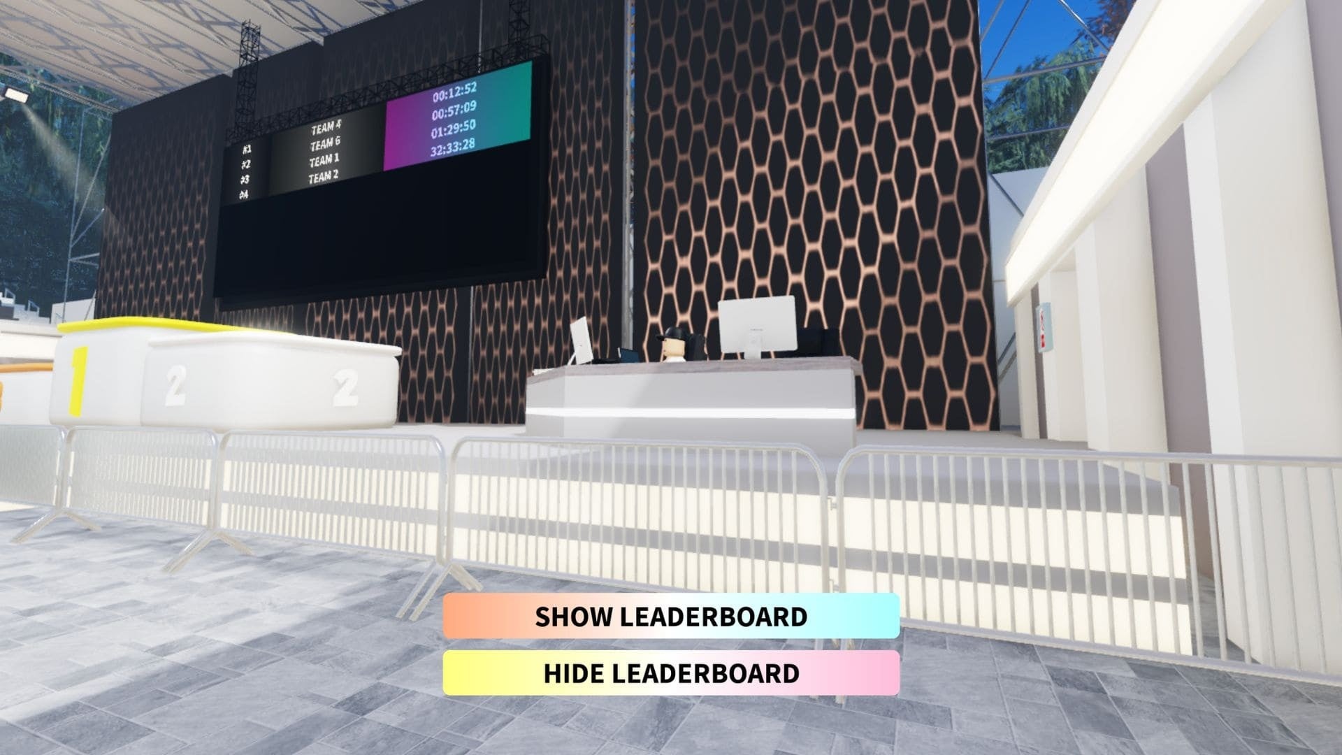 各チームのクリアタイムを自動収集し、スクリーンへ表示可能に。