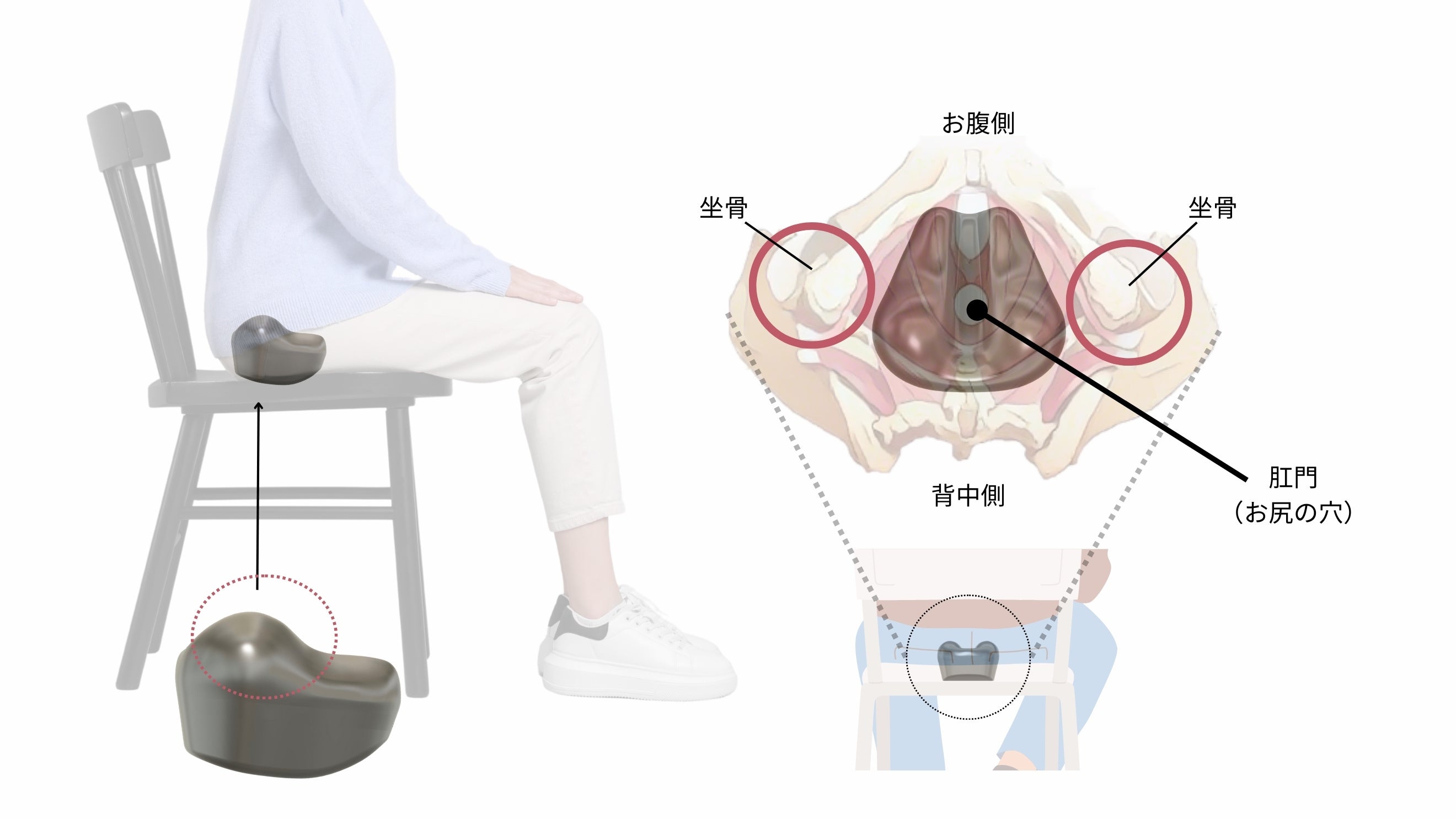 ウェルネス市場において骨盤底筋を鍛えるアイテムは多く見られるようになってきたが、骨盤底筋を「ほぐす」という視点がまず新しいと感じられた。