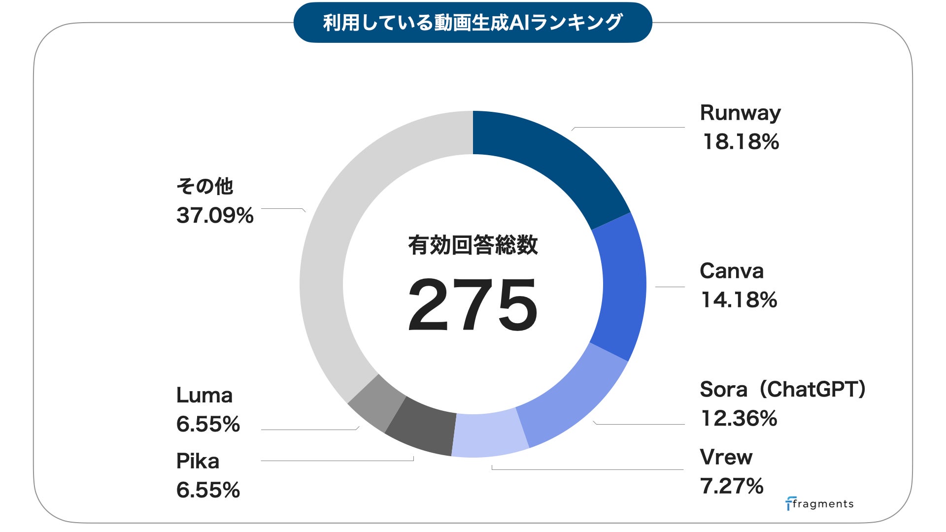 ◾️利用者が最も多い動画生成AIはRunway!2位「Canva」3位「Sora」