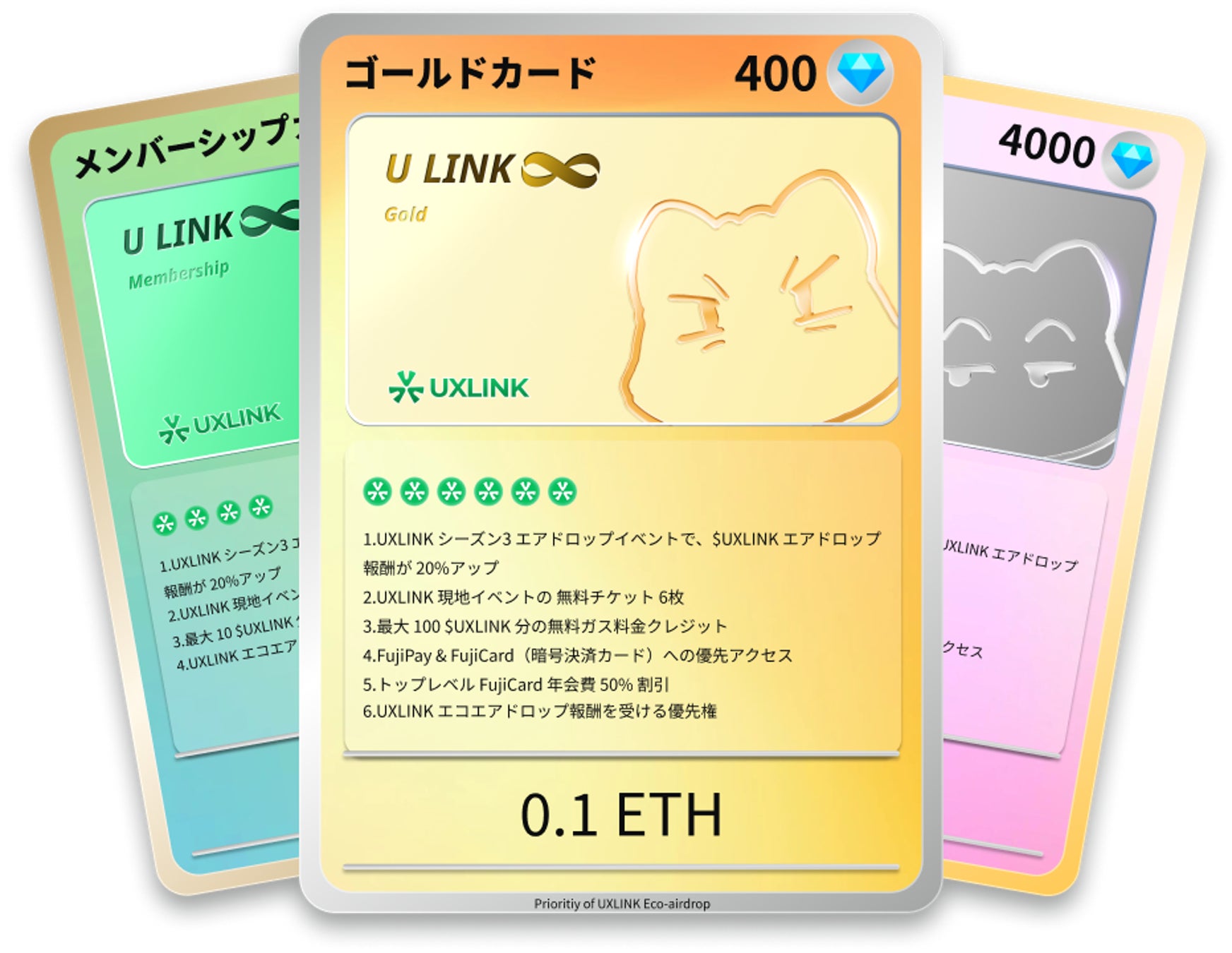 特に、日本と韓国のユーザー限定で、UXLINK Social Club Card(NFT)を販売しています!このNFTを持つことで、シーズン3エアドロップの優先参加権をはじめ、UXLINKのオフラインイベントへの優先入場や、エコシステム内のさまざまな特典を受け取ることができます。Web3の未来を共に創る仲間として、特別な体験をお楽しみください!