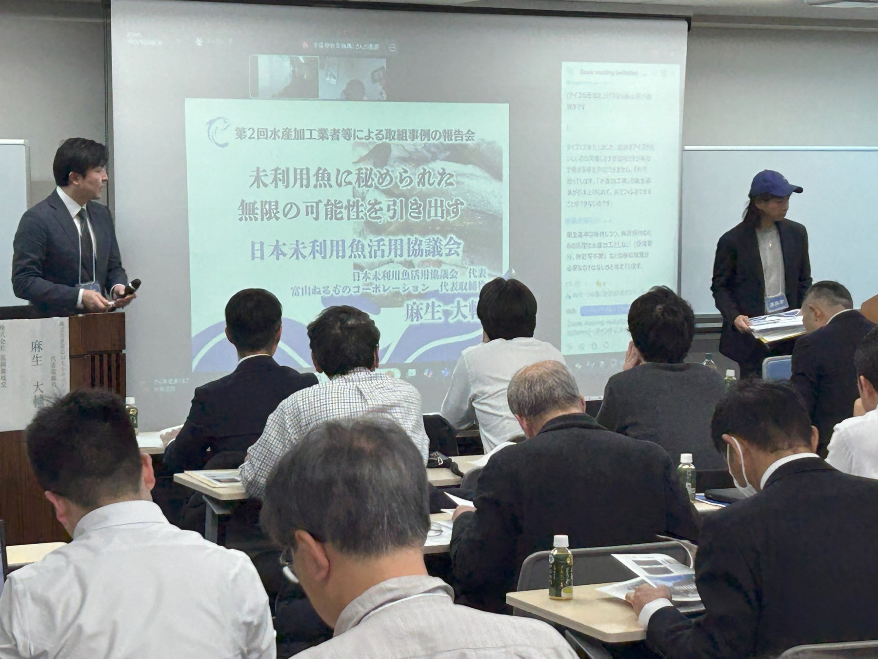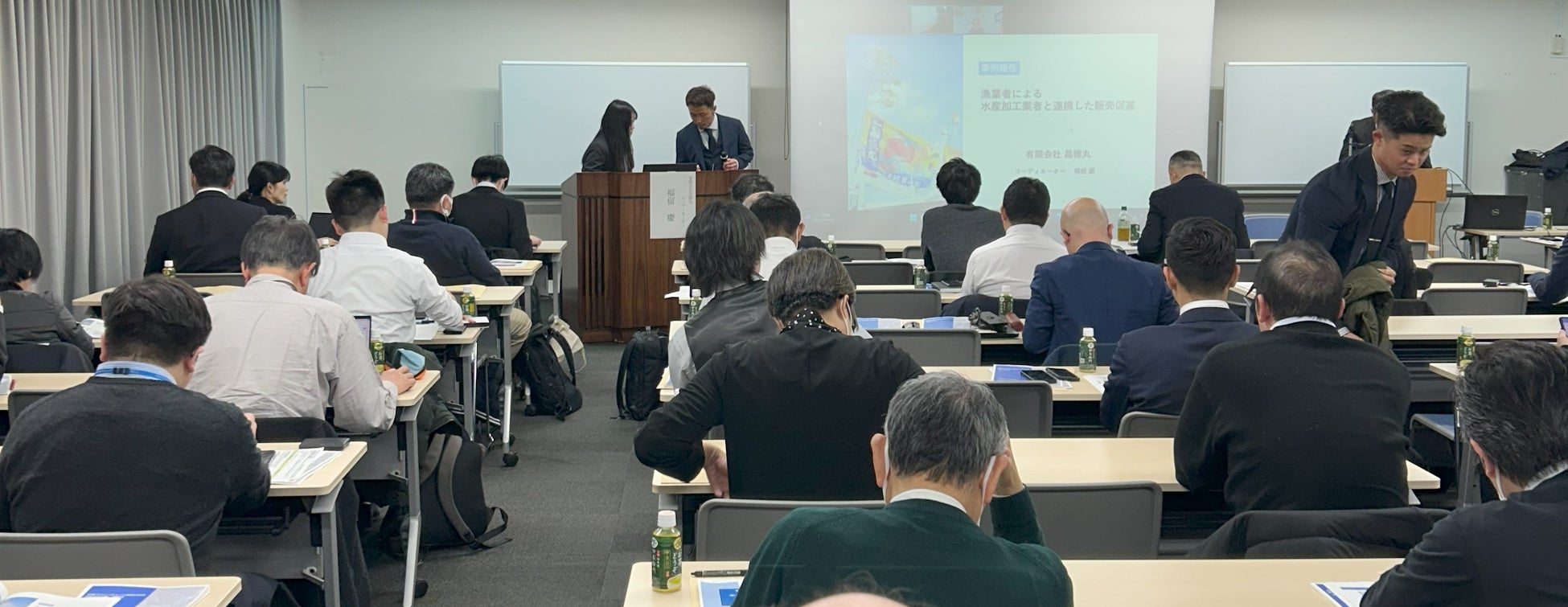 本報告会は、水産庁の補助事業「令和6年度水産加工連携プラン支援事業」の一環として、本事業の周知および補助金を活用した水産加工業者等の取り組みの横展開、そして情報交換を目的として開催しました。
