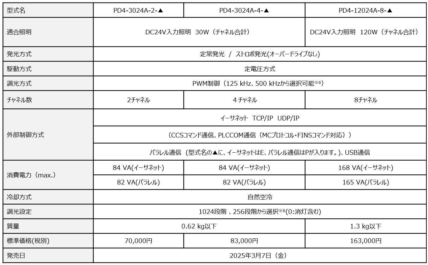 シーシーエス株式会社(本社:京都市上京区 代表取締役社長 大西浩之)は、照明の明るさや点灯パターンなどを制御する画像処理用LED照明デジタル電源「PD4-Aシリーズ」を、2025年3月7日に発売いたします。