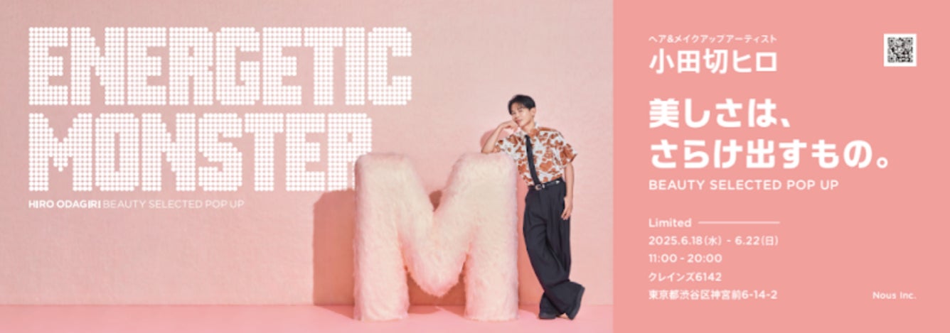 ヘア&メイクアップアーティストの小田切ヒロが代表を務めるNous株式会社は、2025年6月18日(水)から22日(日)にクレインズ6142(東京・表参道)にて、小田切ヒロが初めてプロデュースする期間限定ポップアップイベント「『ENERGETIC MONSTER』 HIRO ODAGIRI BEAUTY SELECTED POP UP」を開催いたします。