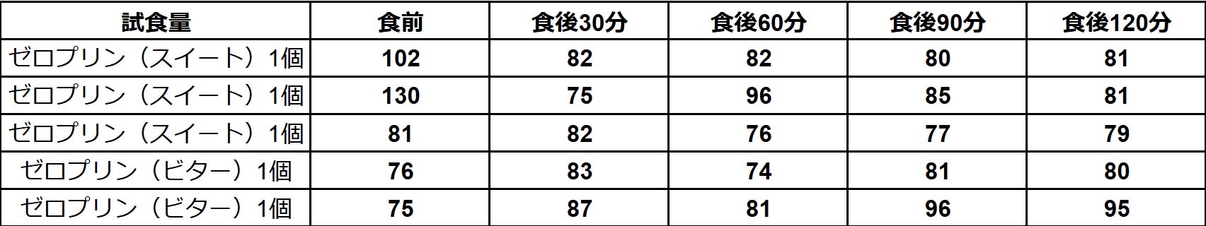 『ドクターズチョイス ゼロプリン』試食前後の血糖値の変化