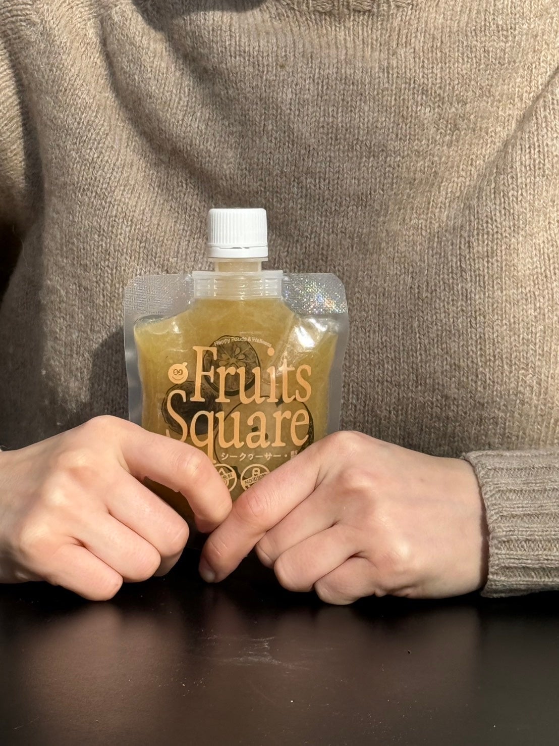 Fruits Square「つわりの時にも飲みたいゼリー」は、代表自身が妊娠中に思う様に栄養を摂れなかった経験から、サプリだけではなく野菜や果物からも手軽に栄養を摂りたい、と思いついたことから生まれたオリジナル商品です。