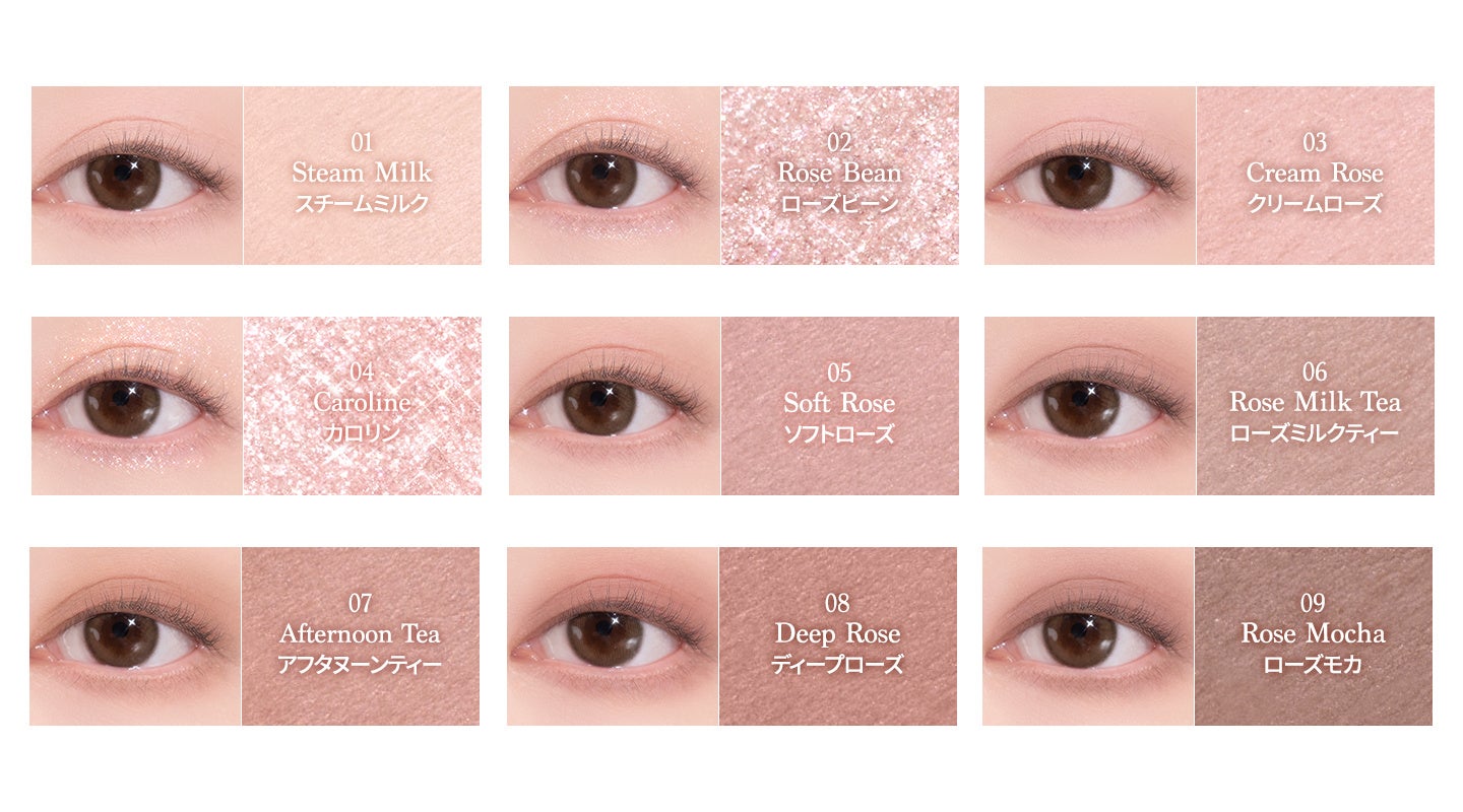 甘いローズの花びらをぎゅっと詰め込んだ、ふんわりやさしい色合いのソフトロージーブラウンパレット。