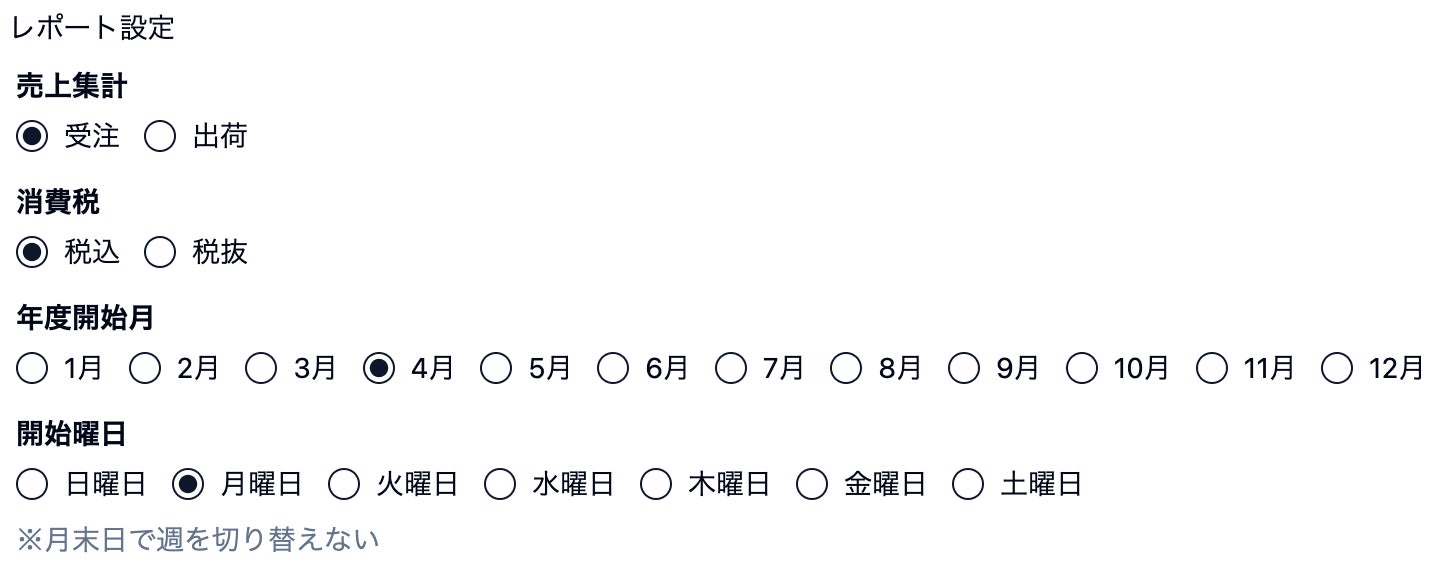 データ集計の手間を極小化させることを目的に、年度の開始月や週の開始曜日、あるいは税込・税別など、企業によって異なる集計方法を任意で設定することを可能にしました。