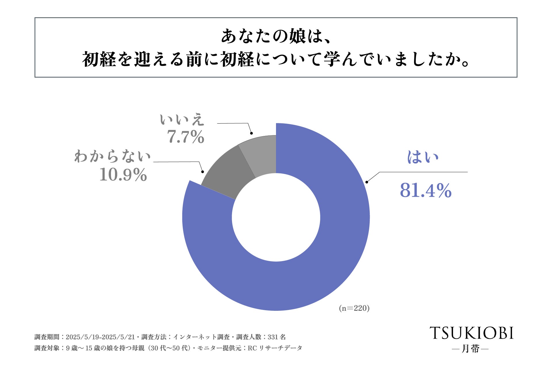 9歳~15歳の娘の8割以上が、初経を迎える前に生理について学んでいる