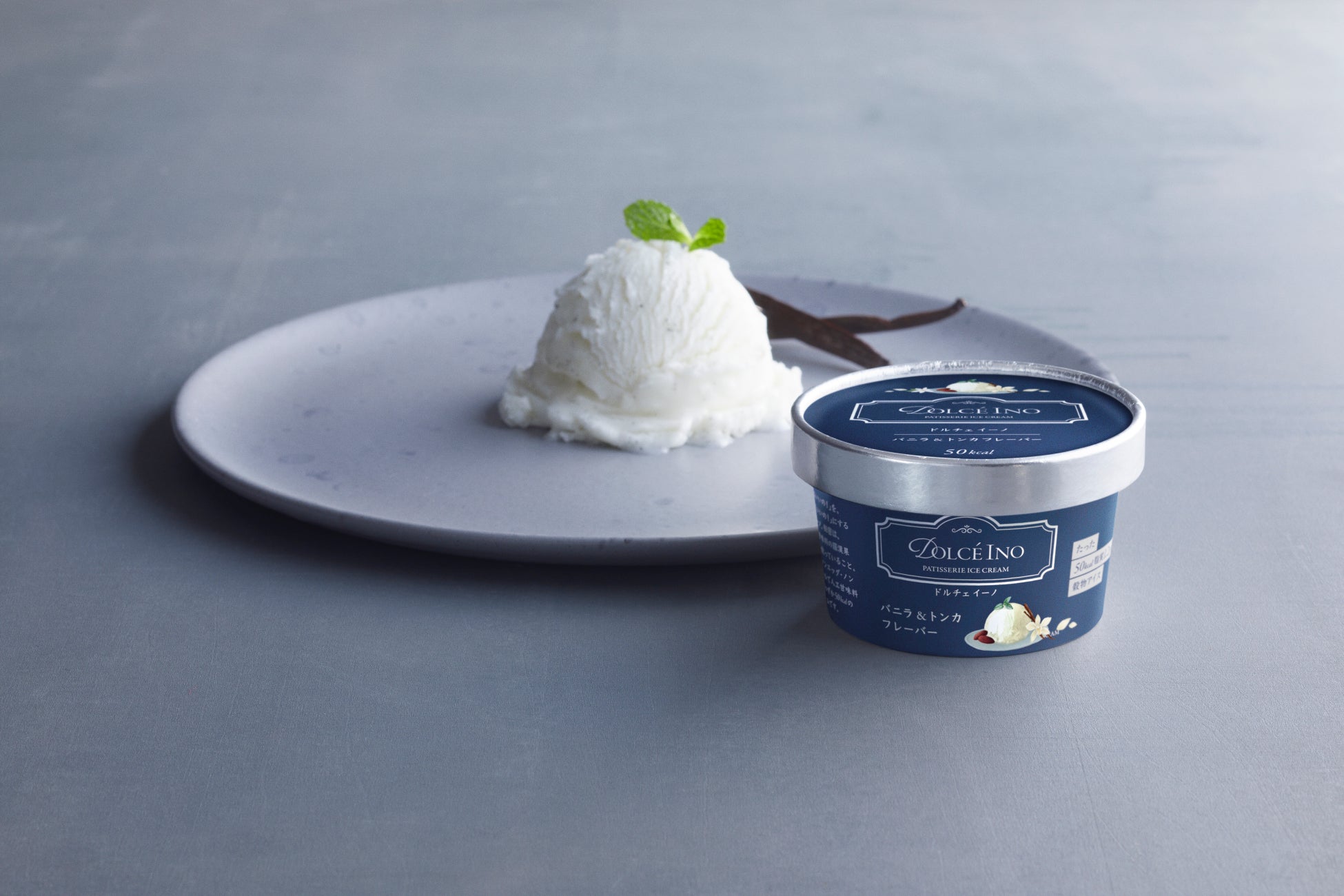 今回Grand Bleu&Co.が開発した低カロリーアイス「Dolce Ino」は、人工甘味料を使わず、大豆と天然甘味料「羅漢果(ラカンカ)」を使うことで、驚異の50kcal、脂質1.2gを実現。アイス史上最少カロリーといえる商品で、誰でも罪悪感なくお召し上がりいただけます。ローカロリーにはこだわりつつも、味や食感も最大限こだわり、スプーンが通りやすく滑らかな舌触りが楽しめる至高のスイーツに仕上げました。全5種類の風味豊かなフレーバーで展開します。