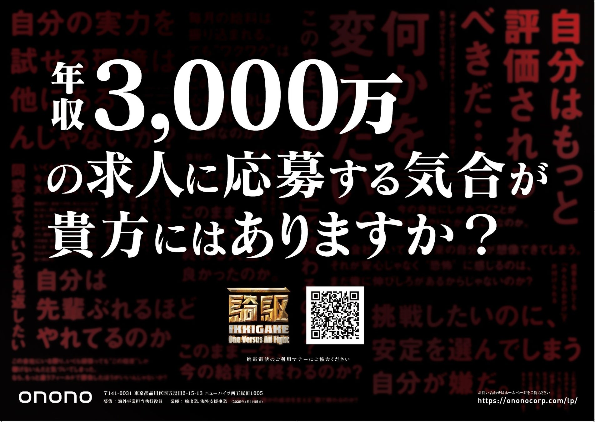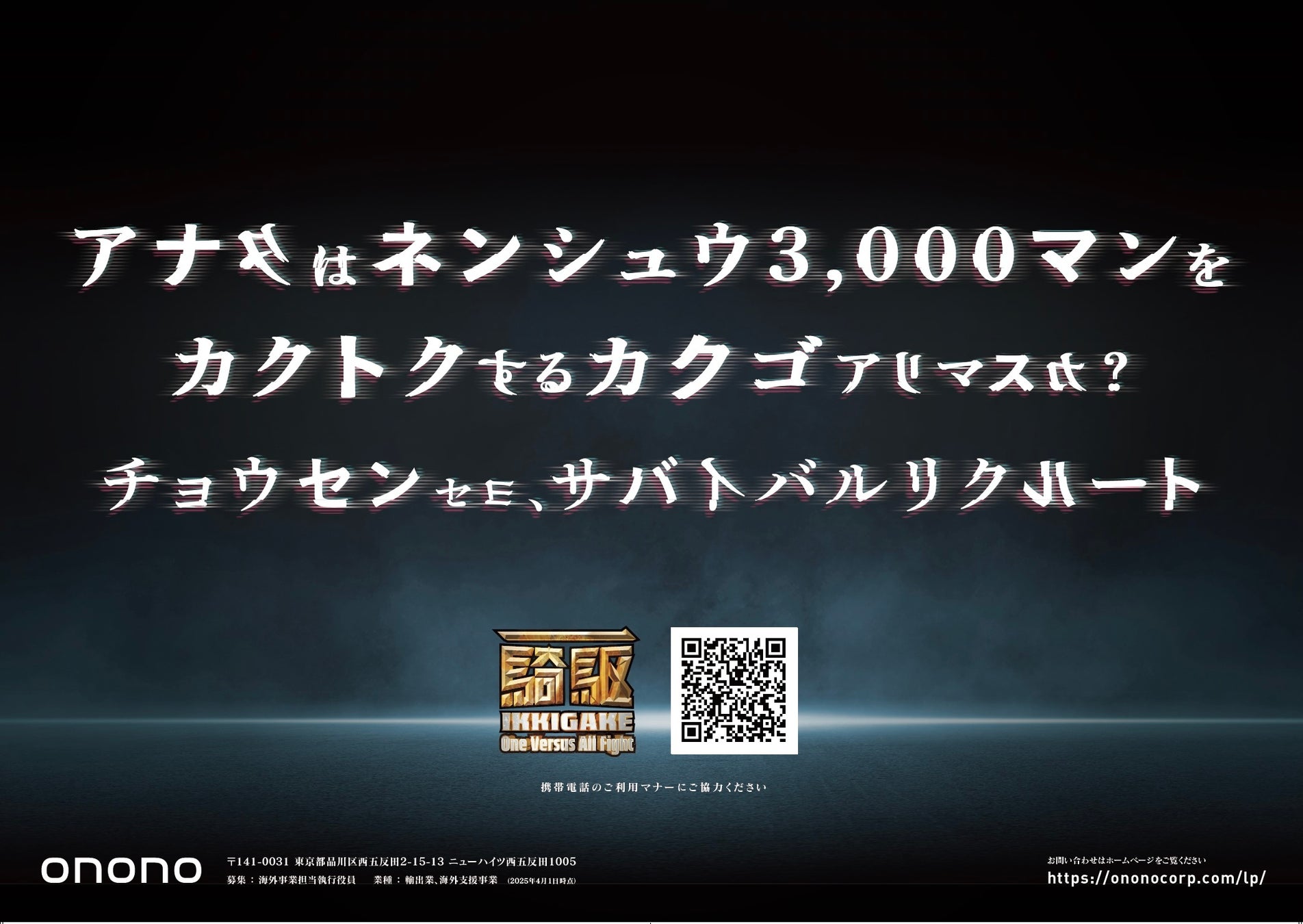 「あの頃の熱狂を取り戻す」というコンセプトの元、Ononoが今後展開していく国内外の事業を力強く推進していく人材を年収3,000万円でオファーする就活バトルコンテンツです。