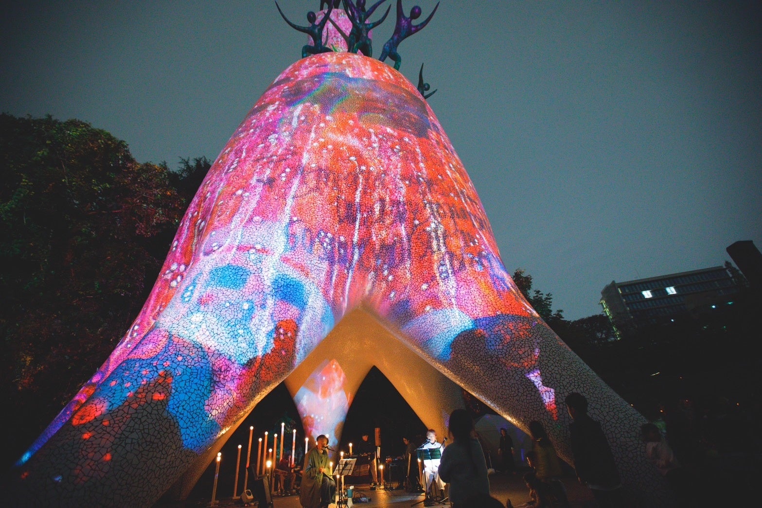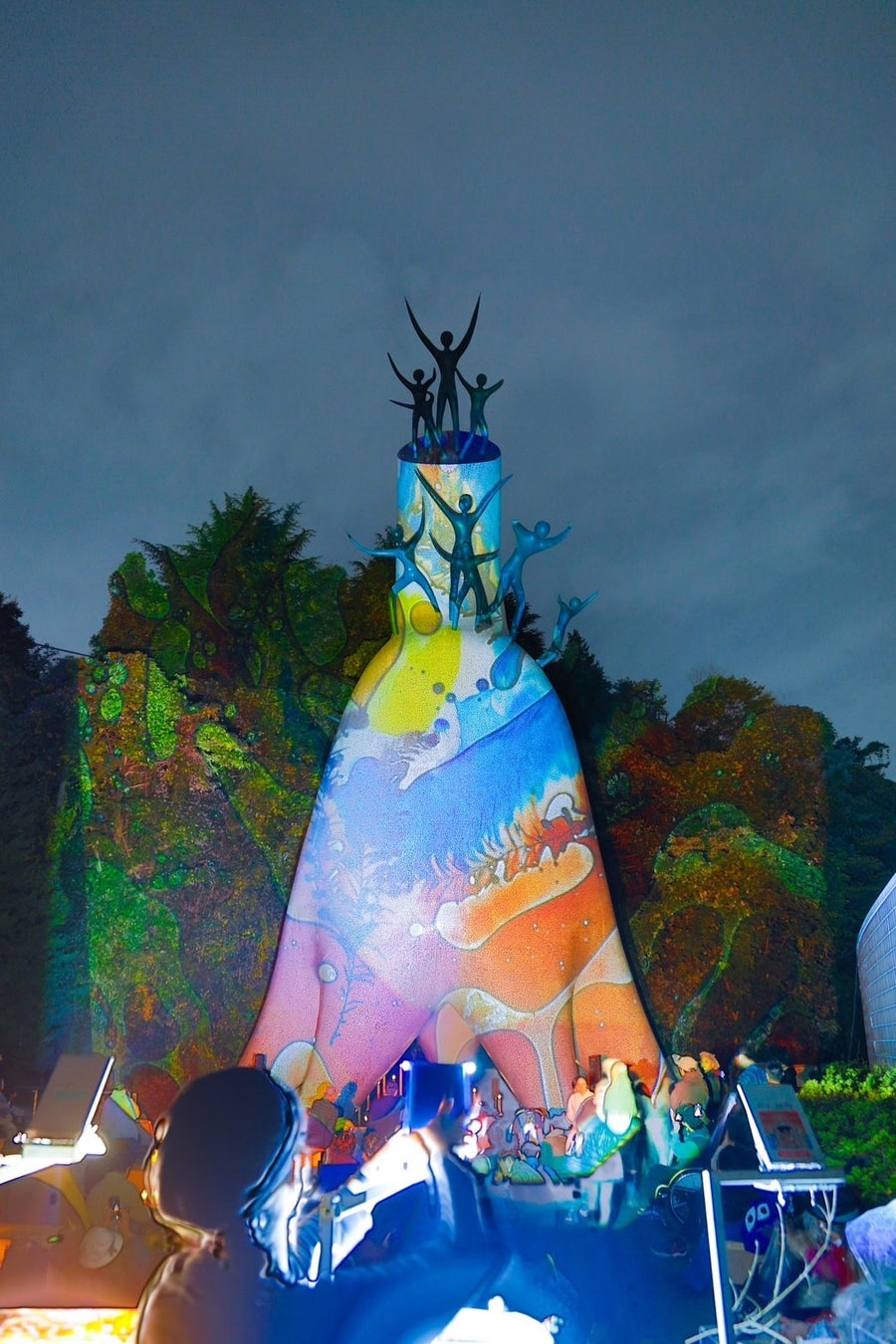 光と音が織りなす幻想の一夜高さ30m 岡本太郎《母の塔》が輝く「Colors TARO Night」開催!