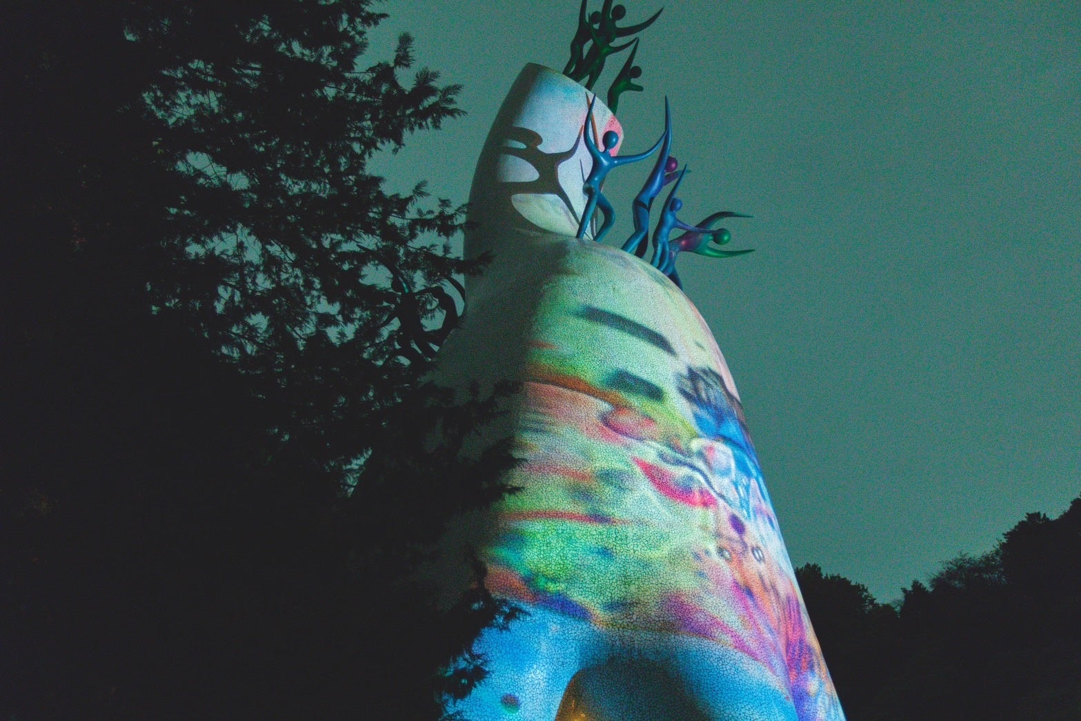 そんな幻想的な空間で、「第41回 全国都市緑化かわさきフェア(Green For All KAWASAKI 2024)」のフィナーレを飾る「Colors TARO Night」が、2025年4月12日(土)に開催されます。 高さ30mの岡本太郎《母の塔》が、ヴィジュアルアーティスト仙石彬人によるリキッドライティングの魔法に包まれ、極彩色の光をまとって姿を変える、光と音、アートが融合する、奇跡の一夜が開かれます。