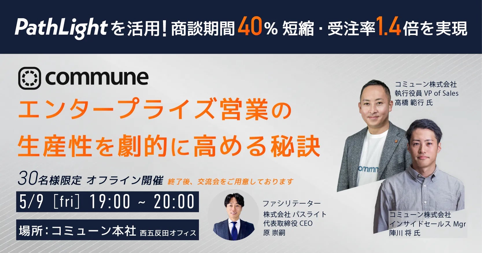 【30名限定|5/9(金)オフライン開催】コミューン様登壇!エンタープライズ営業の生産性を劇的に高める秘訣