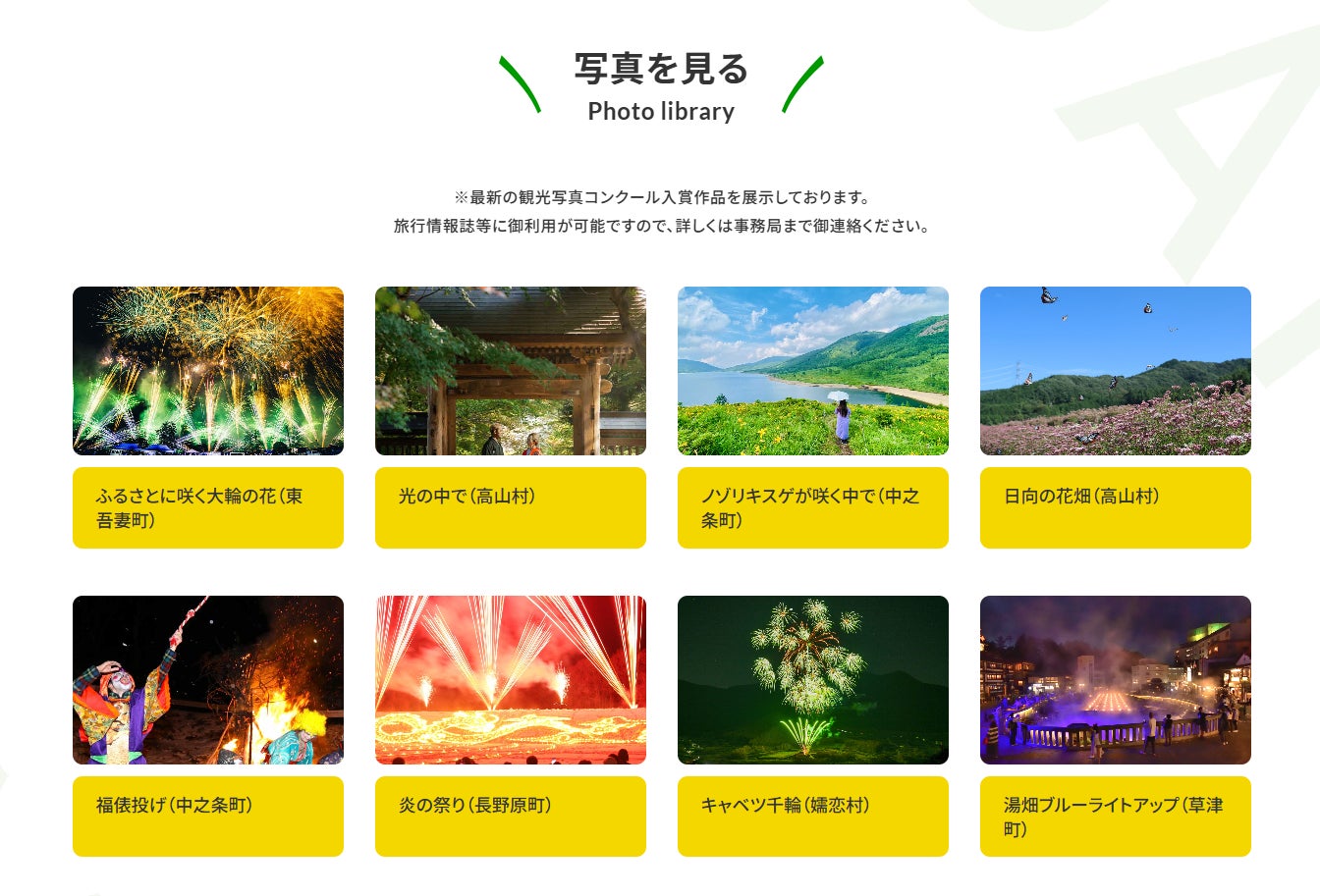 本ポータルサイトは、こうした吾妻地域の観光に関する新着情報や施設、イベント情報などを網羅しており、吾妻地域への観光をご検討されているお客様はもとより、旅行メディアの方の情報収集ツールとしてご活用いただけるものとなっております。