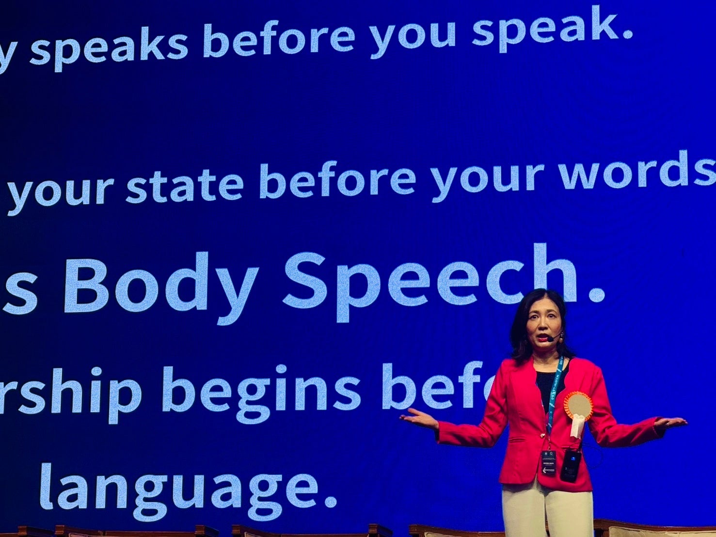 日本古来の概念である「身口意一致(しんくい いっち/身体・言葉・意識の統合)」を現代のリーダーシップに応用し、姿勢・呼吸・視線・間(ま)を統合することで、存在感、“言葉の前に伝わる状態”を整えるプロセス を解説しました。