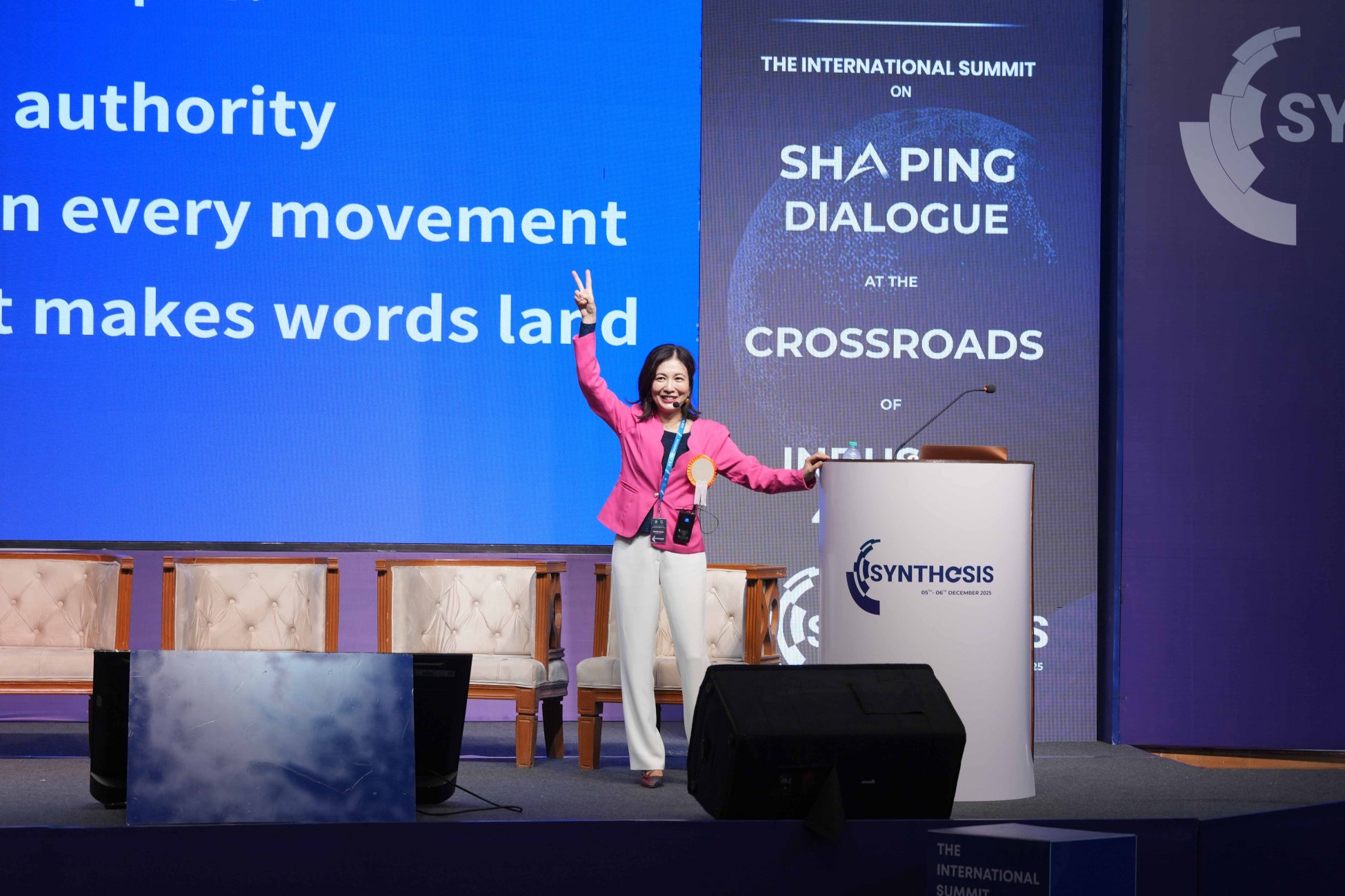 俳優・パフォーマーとして40年の経験を持ち、ボディスピーチ創始者であり、スピーチコーチとして表現指導を行うおがた まゆみが、ダボス会議を主催する世界経済フォーラム(WEF)の直轄組織であるグローバル・シェイパーズ・コミュニティ(インド・マハーラーシュトラ州コールハープル)が主催する国際サミット「SYNTHESIS(インダストリー4.0と5.0の融合)」に登壇。