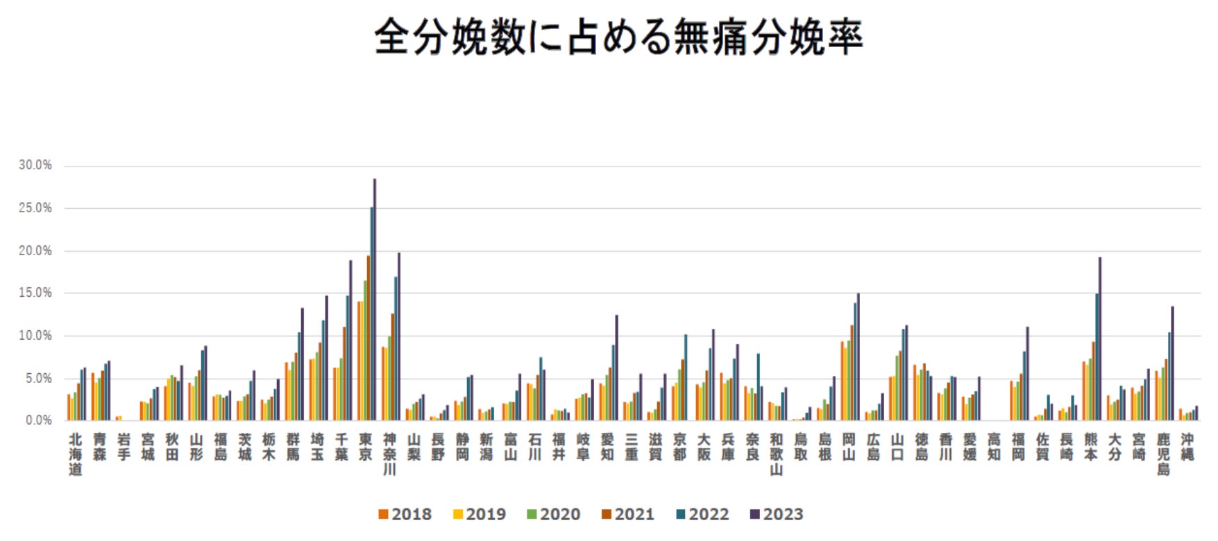 2024年9月に厚生労働省で開かれた第4回「妊娠・出産・産後における妊産婦等の支援策等に関する検討会」では、日本の無痛分娩率の急激な上昇(東京28%、神奈川20%と特に首都圏が急上昇)が示されたが、照井克生:日本産科麻酔学会理事長は「無痛分娩の安全な提供体制がまだ構築途上であることに注意を促す」としている。