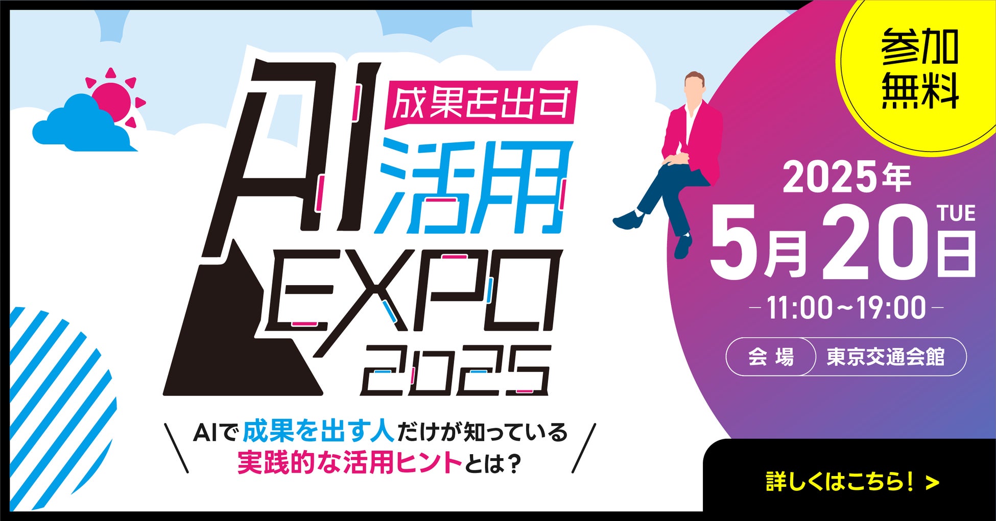 成果を出すAI活用EXPO実行委員会は「成果を出すAI活用EXPO」を2025年5月20日(火)に東京交通会館(東京都千代田区)で先行開催します。