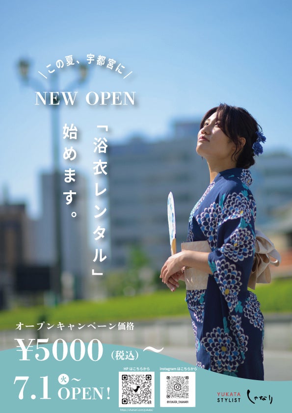 本サービスは、浴衣一式とプロによる着付けをセットで、レディースプラン 5,000円(税込)~で提供し、宇都宮の夏を彩る花火大会やお祭り、まち歩きなどを気軽に浴衣で楽しんでいただくことを目的としています。